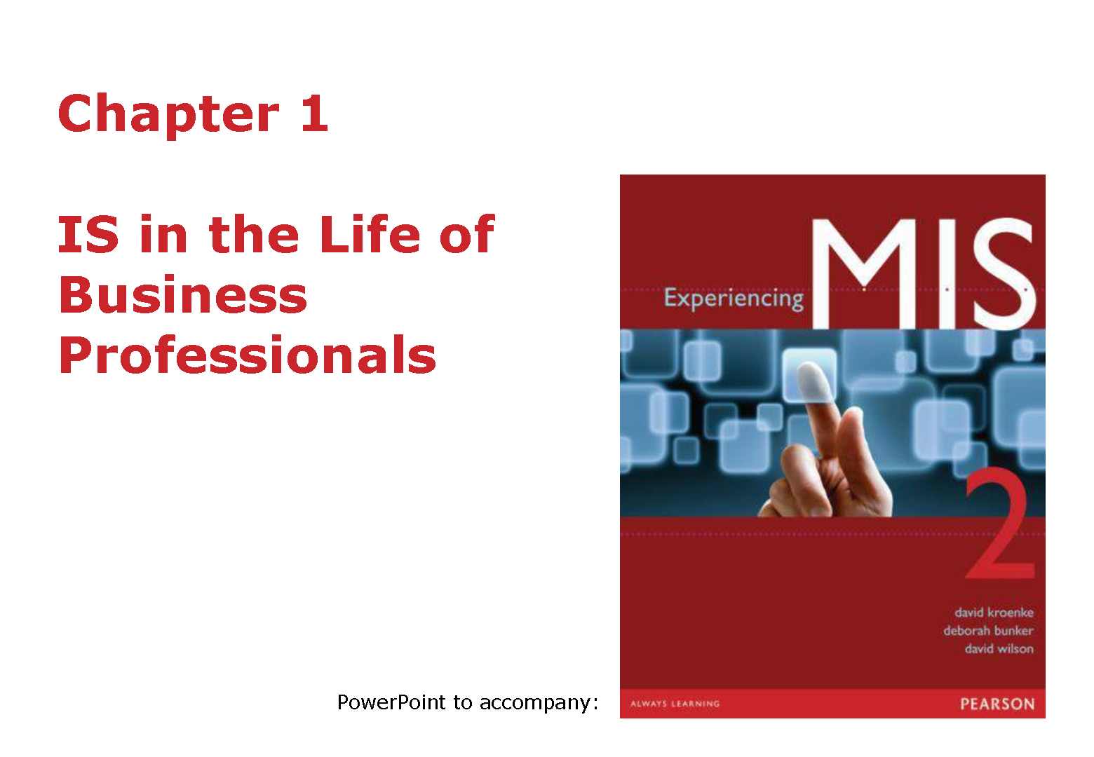 Experiencing MIS, 2nd Edition by David Kroenke, Deborah Bunker, and David Wilson: PowerPoint Slides for Chapter 1