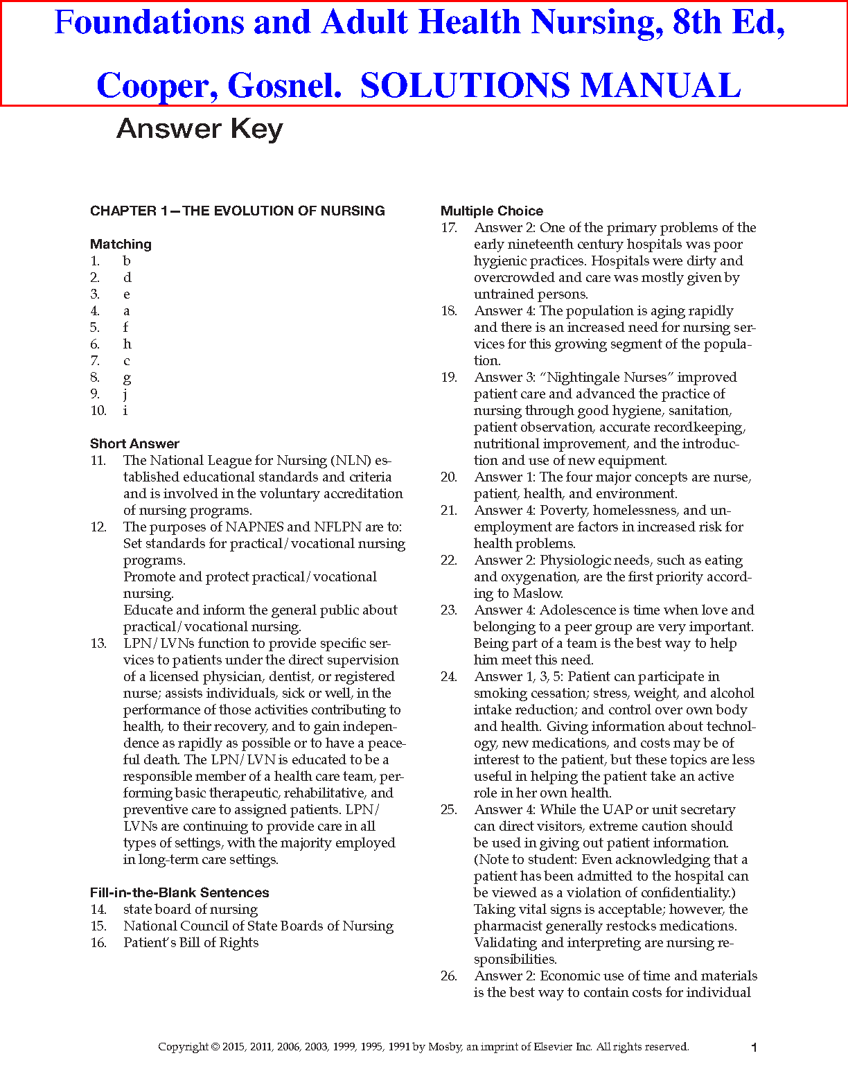 Access the complete solutions manual for the 8th edition of Foundations and Adult Health Nursing by Patricia A. Potter, Anne Griffin Perry, and Patricia A. Potter. This resource offers comprehensive answers to end-of-chapter questions and exercises, providing invaluable support for students aiming to excel in their nursing studies and achieve success on their first exam attempt.
