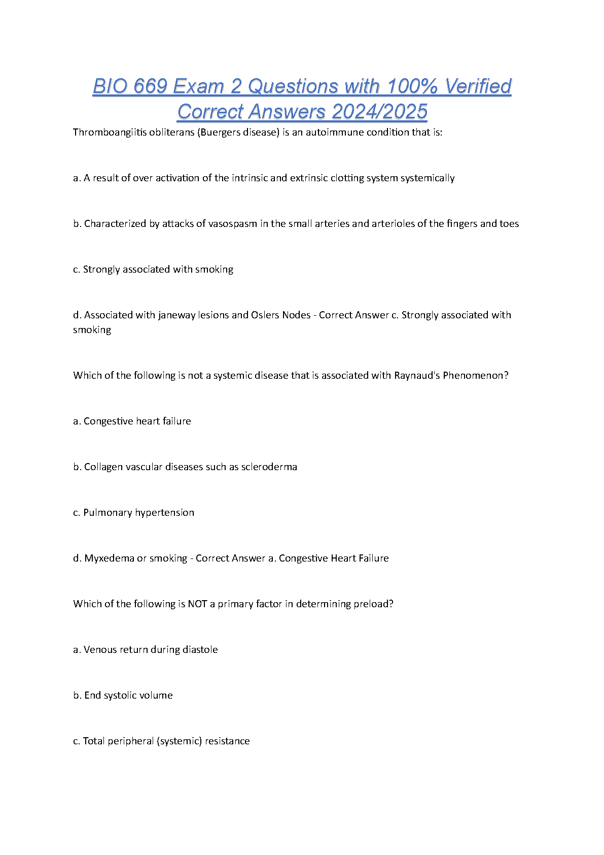 Ace your BIO 669 Exam 2 with this comprehensive question bank featuring 100% verified answers. Perfect for students aiming to pass on their first attempt, this resource covers key concepts and helps avoid resits. Prepare effectively for the 2024/2025 academic year.