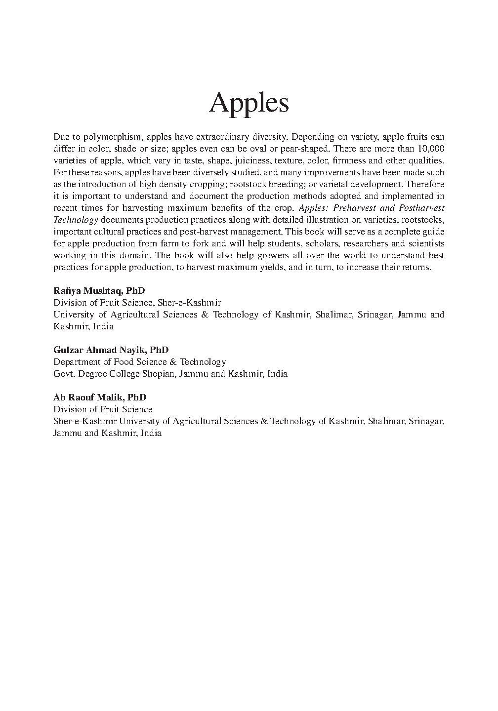 Apples: Preharvest and Postharvest Technology - Edited by Rafiya Mushtaq, Gulzar Ahmad Nayik, and Ab Raouf Malik