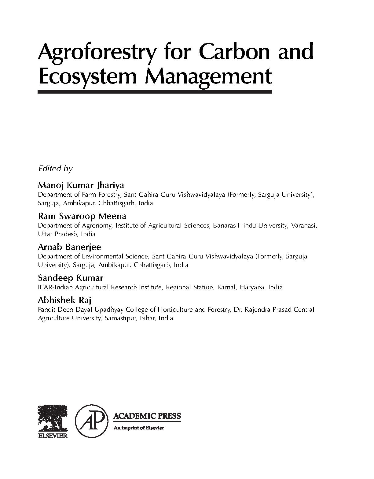 Agroforestry for Carbon and Ecosystem Management: Edited by Manoj Kumar Jhariya, Ram Swaroop Meena, Arnab Banerjee, Sandeep Kumar, and Abhishek Raj