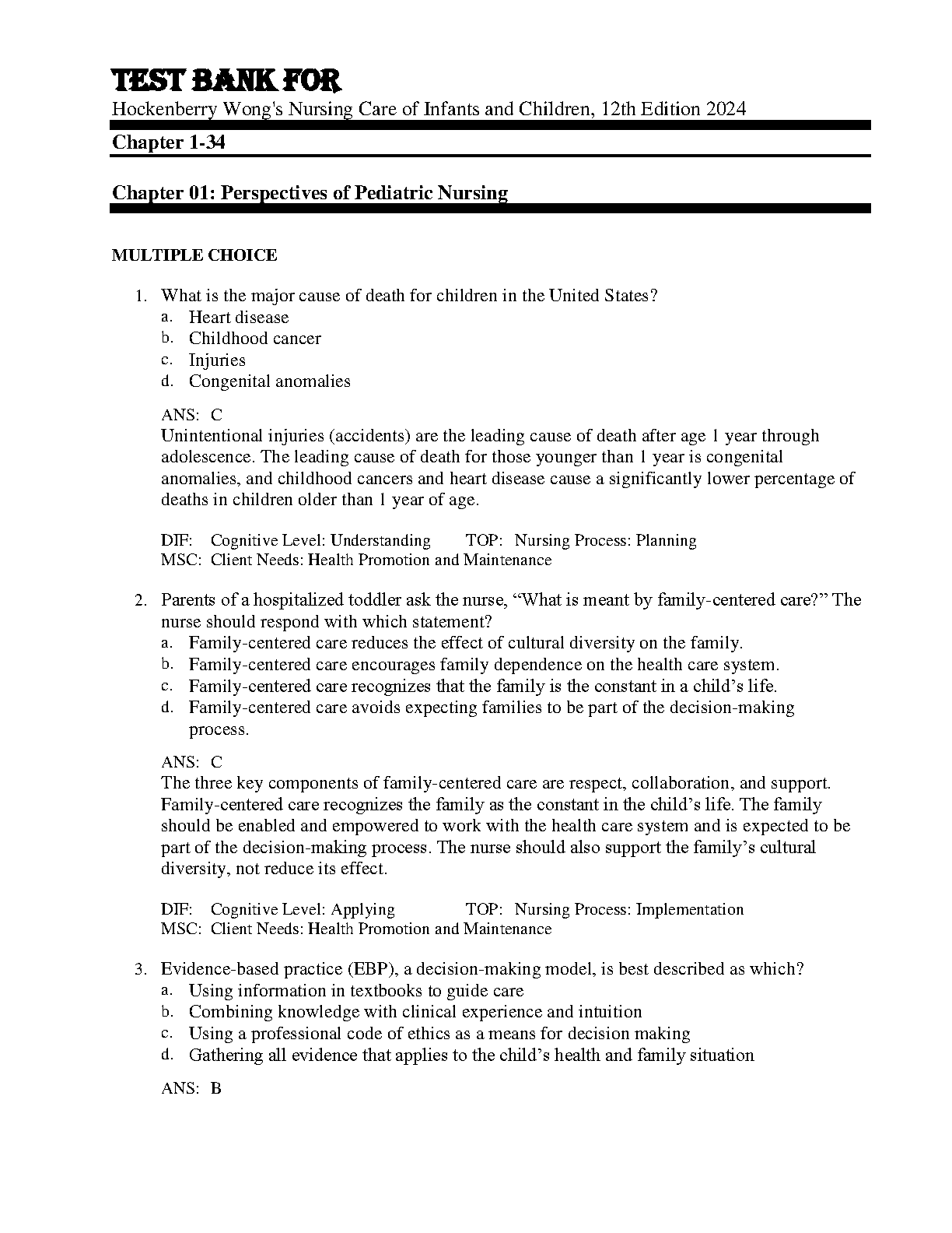 Hockenberry & Wong's Nursing Care of Infants and Children, 12th Edition 2024: Test Bank