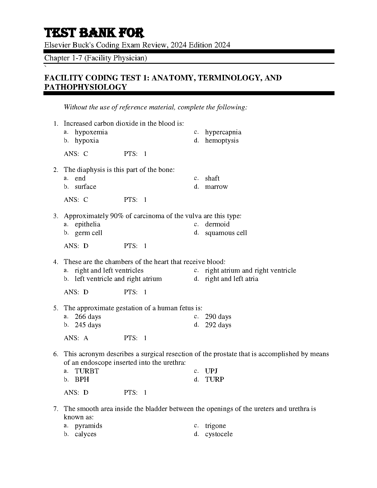 Access the complete test bank for Elsevier Buck's Coding Exam Review, 2024 Edition. This resource is designed to help students ace their exams and avoid resits. Prepare effectively for the 2024/2025 academic year.