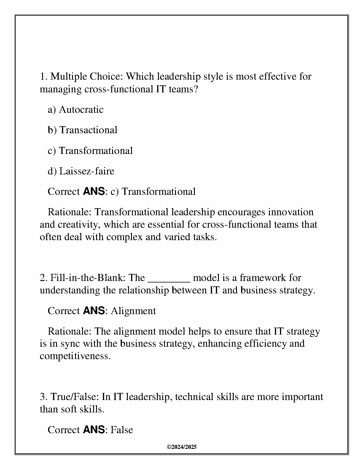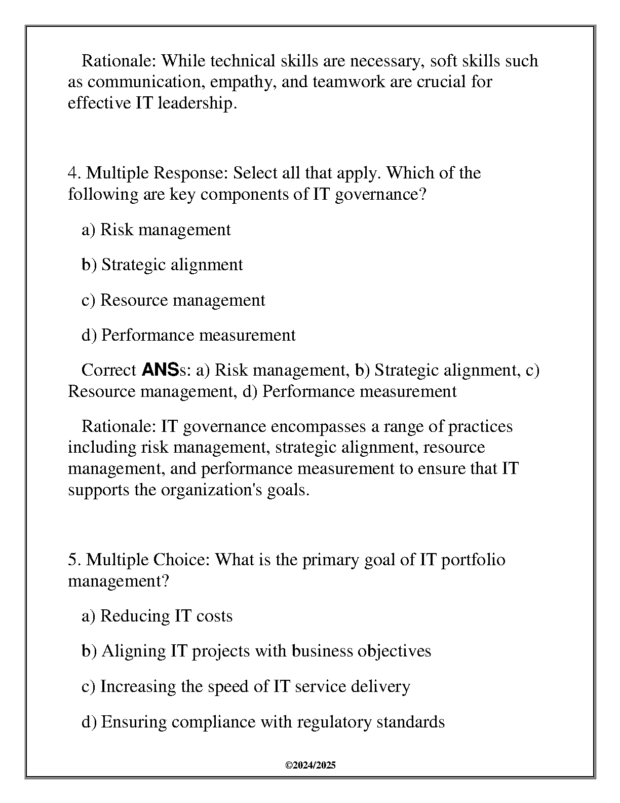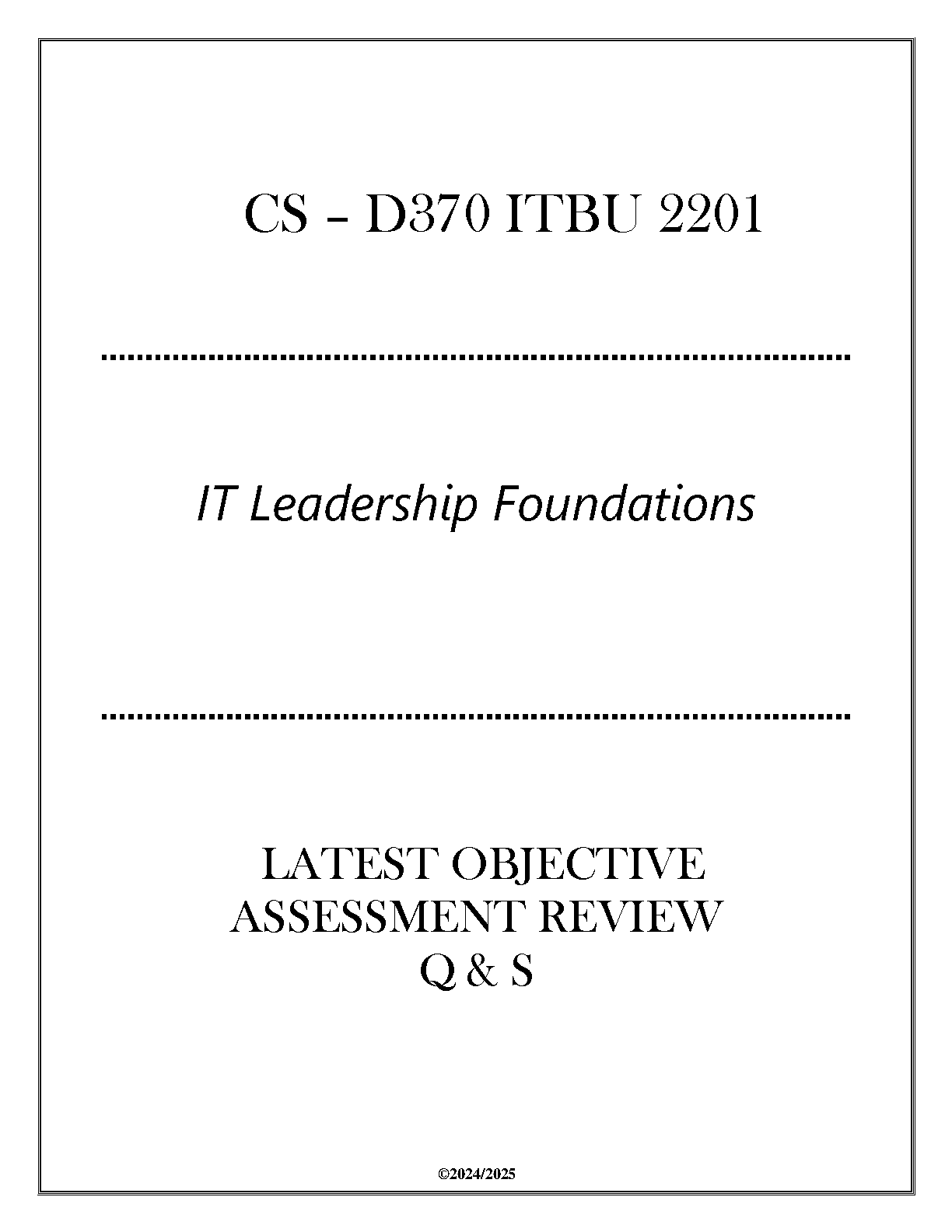 2024/2025 IT Leadership Foundations: CS - D370 ITBU 2201 Latest Objective Assessment Review Q&A