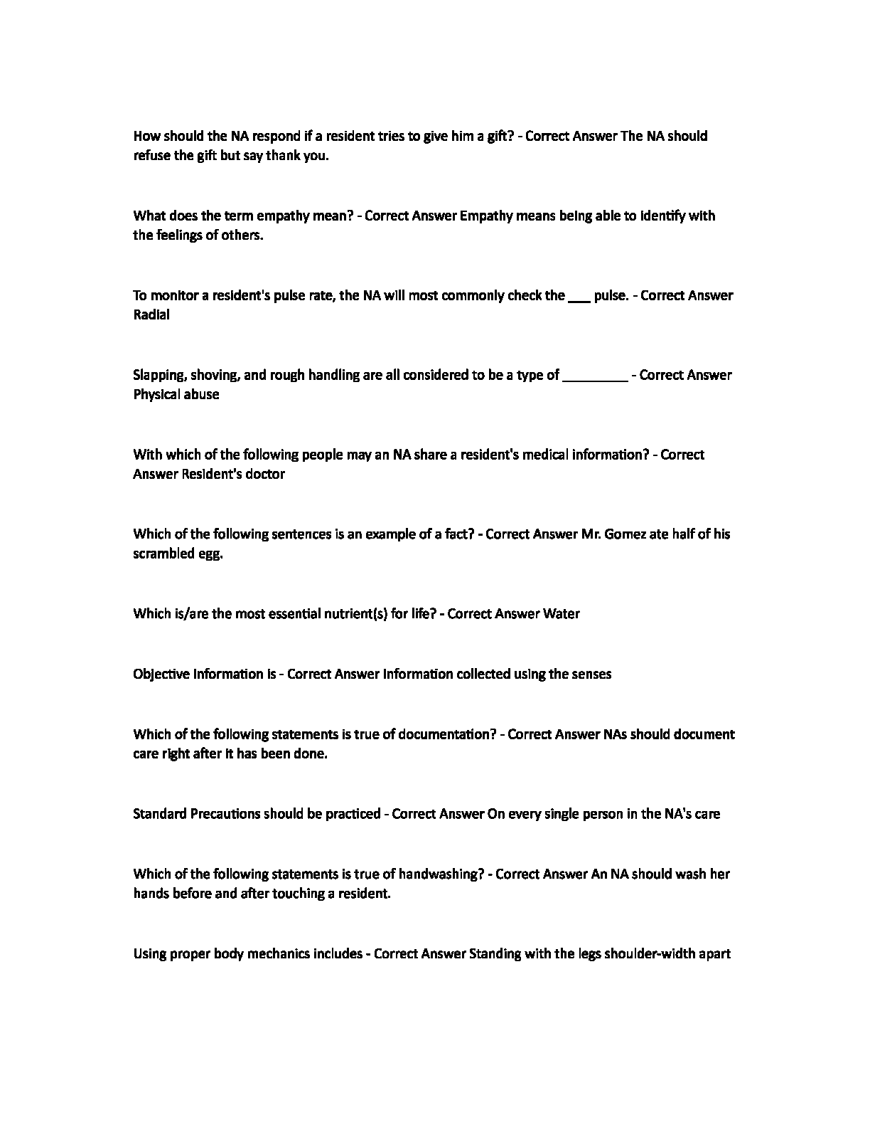 Ace your CNA final exam with this comprehensive review guide featuring 172 questions and answers. This resource is designed to help you pass on your first attempt.