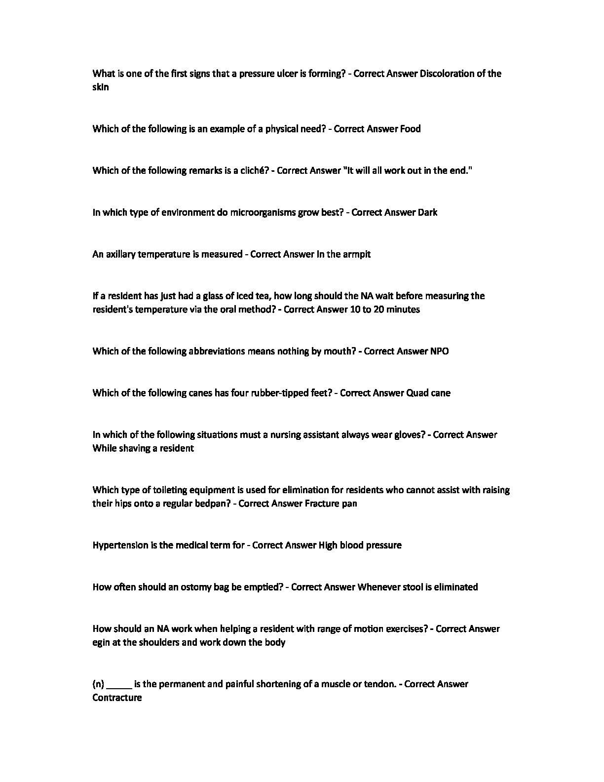 CNA Final Exam Review: 172 Questions with 100% Complete Correct Answers by Unknown Author