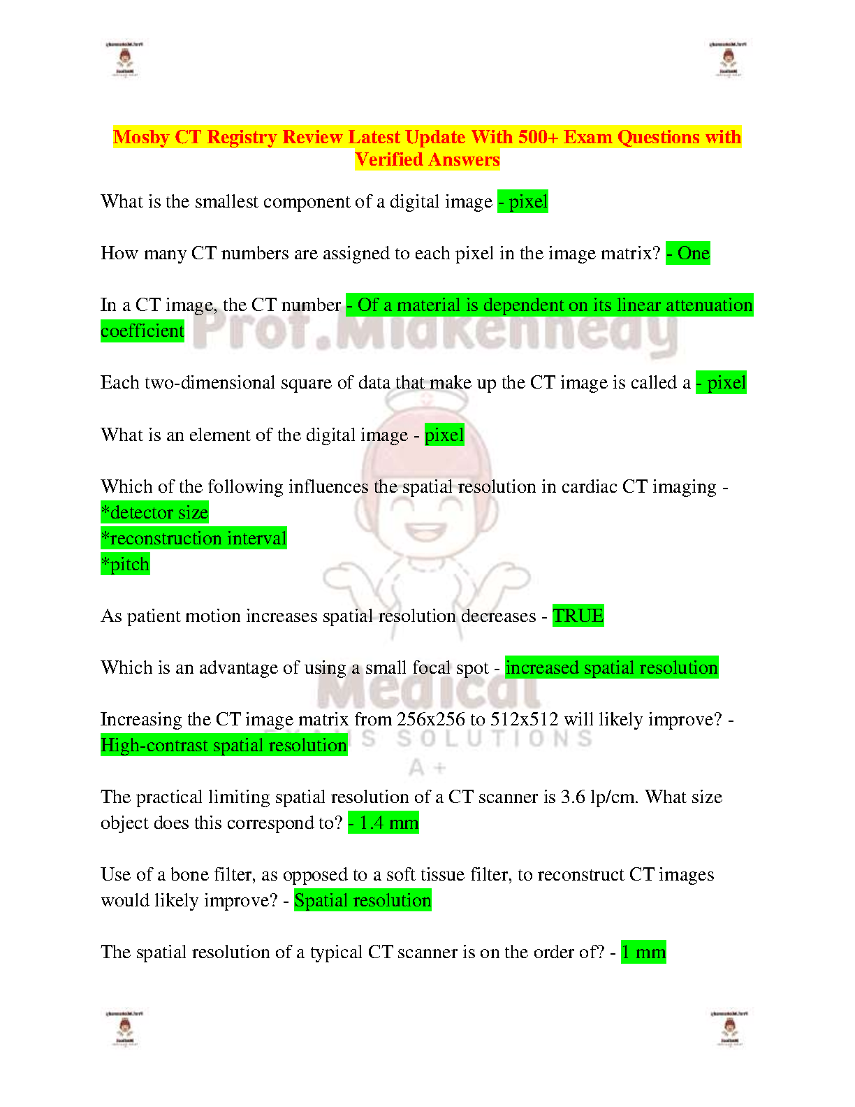 Ace your Mosby CT Registry exam on the first try with this comprehensive review guide. Includes 500+ exam questions with verified answers to help you master the material and avoid resits. Perfect for students aiming for exam success in 2024-2025.