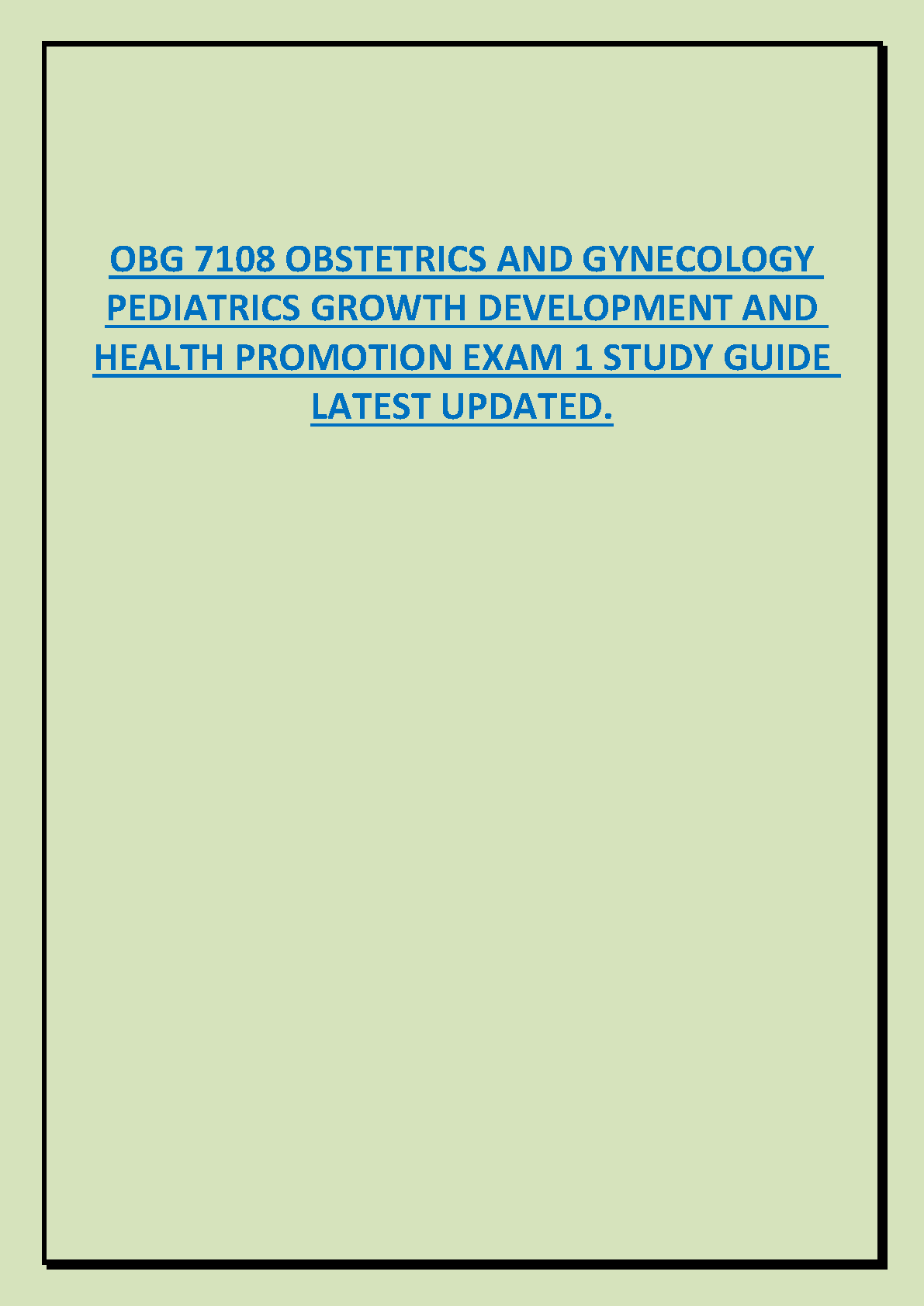OBG 7108 Obstetrics and Gynecology, Pediatrics Growth Development and Health Promotion Exam 1 Study Guide: A 2024-2025 Edition for First-Time Passers