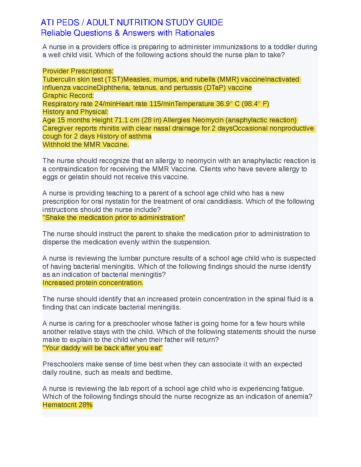 ATI PEDS / ADULT NUTRITION STUDY GUIDE Reliable Questions & Answers with Rationales BRAND NEW SOLUTION 2023/2024. DOWNLOAD on www.hackedexams.com INSTANTLY.