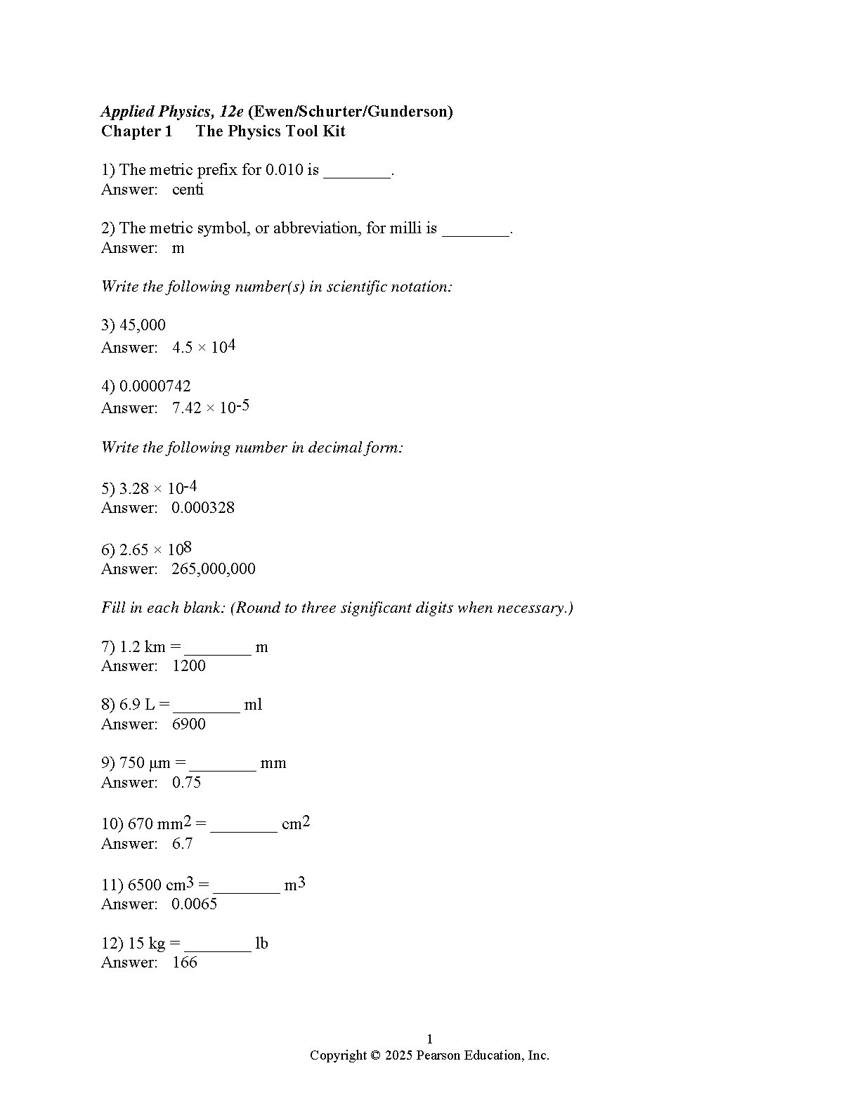 Ace your Applied Physics exam with this comprehensive test bank, meticulously crafted for the Twelfth Edition by Neill Schurter and P. Erik Gundersen. Prepare effectively and avoid resits.
