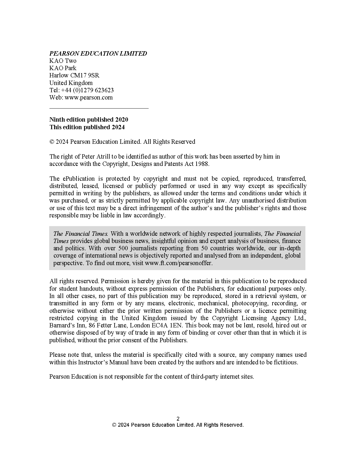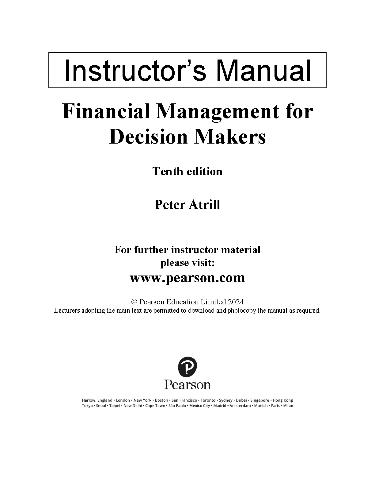 Instructor's Manual for Financial Management for Decision Makers, Tenth Edition by Peter Atrill