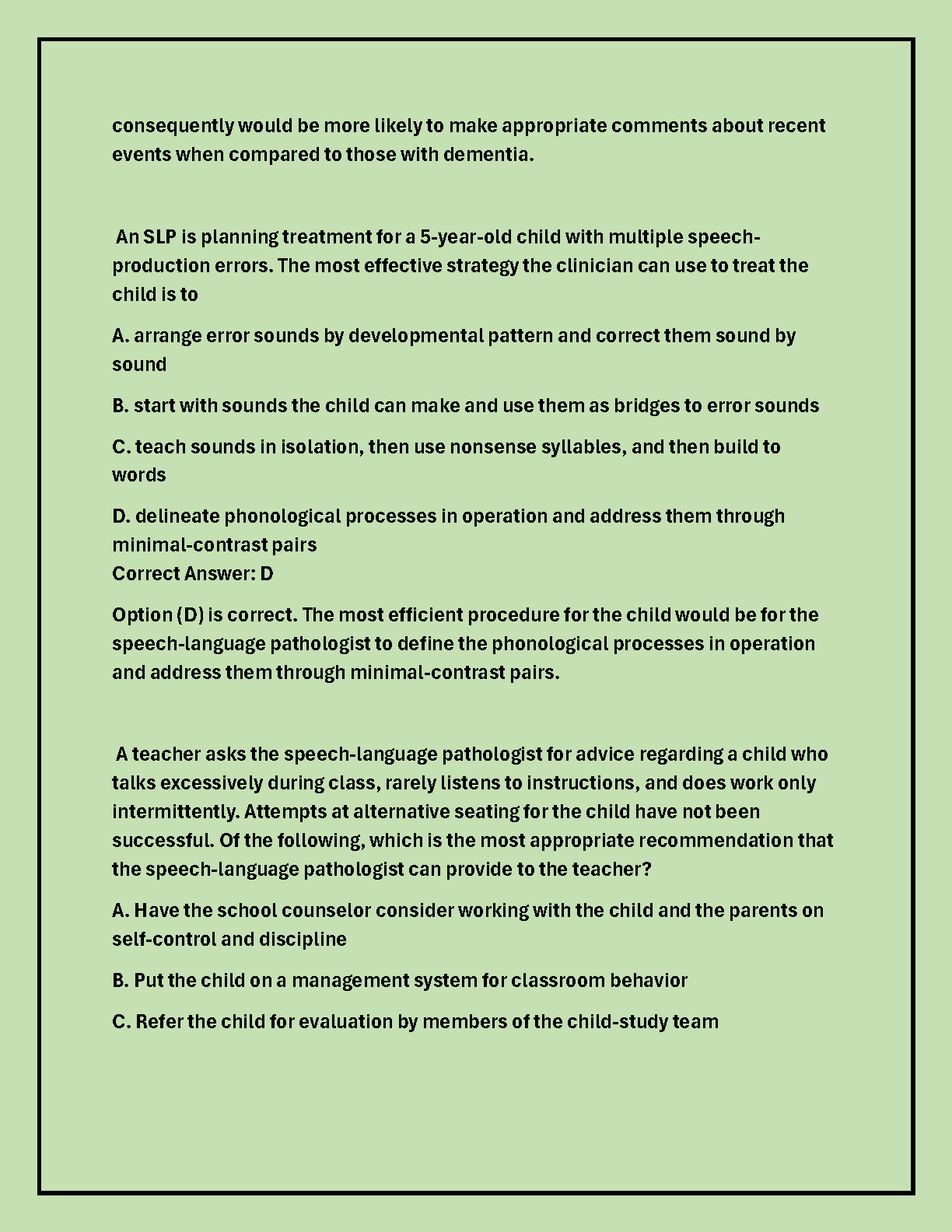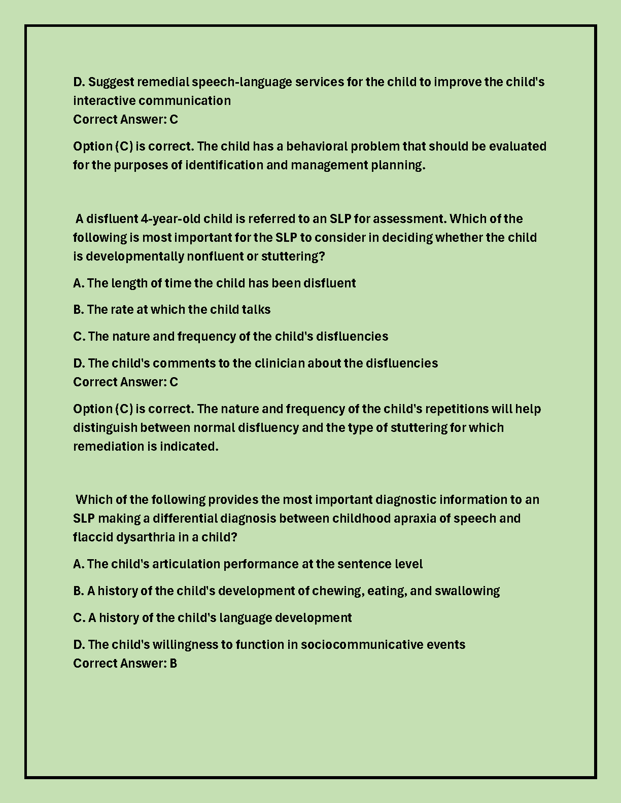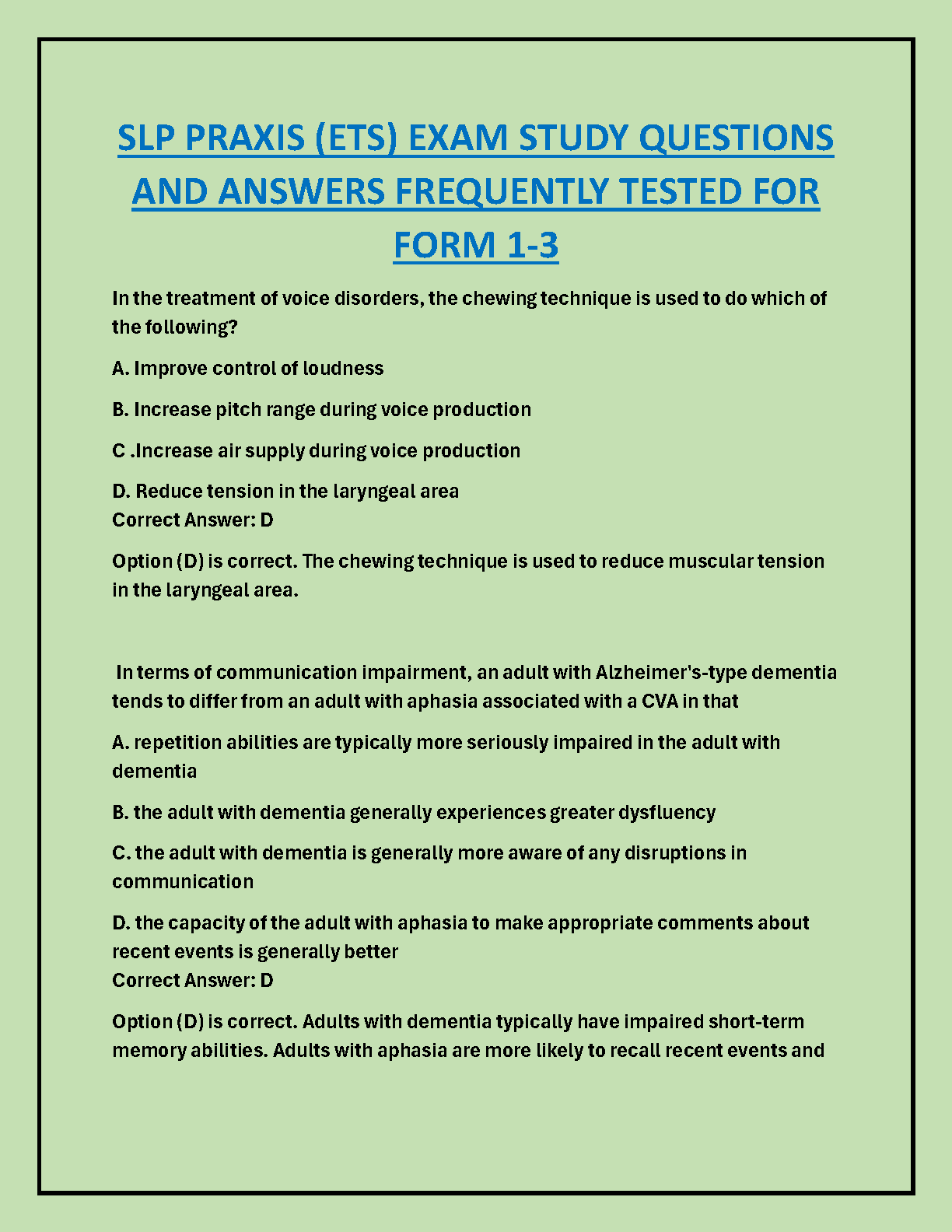 SLP PRAXIS (ETS) Exam Study Questions and Answers: Form 1-3