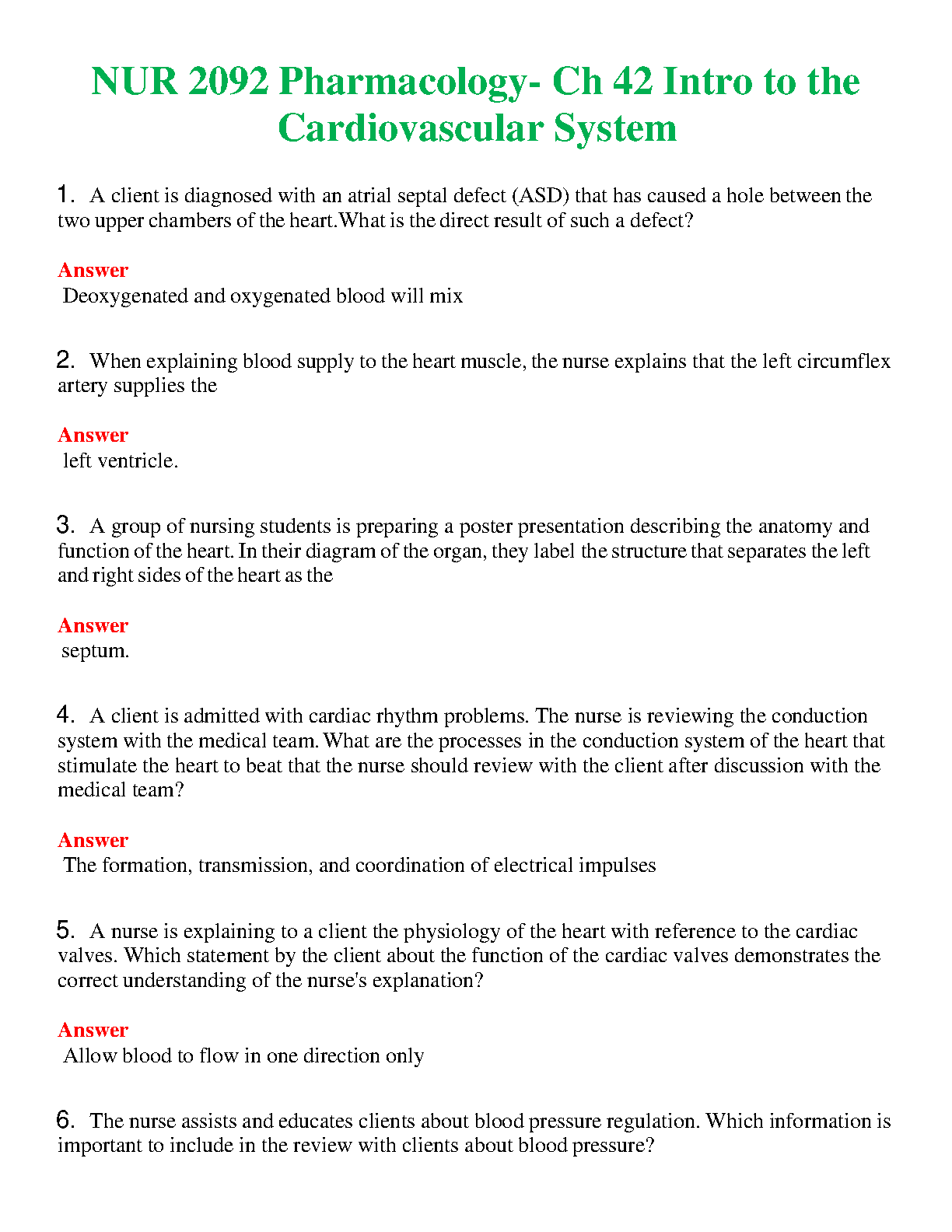 Ace your NUR 2092 Pharmacology exams on the first try with this comprehensive study guide covering Chapter 42: Introduction to the Cardiovascular System. This resource is designed to help students master key concepts and improve their understanding of cardiovascular physiology and pharmacology. This resource is specifically tailored for the 2024-2025 academic year.