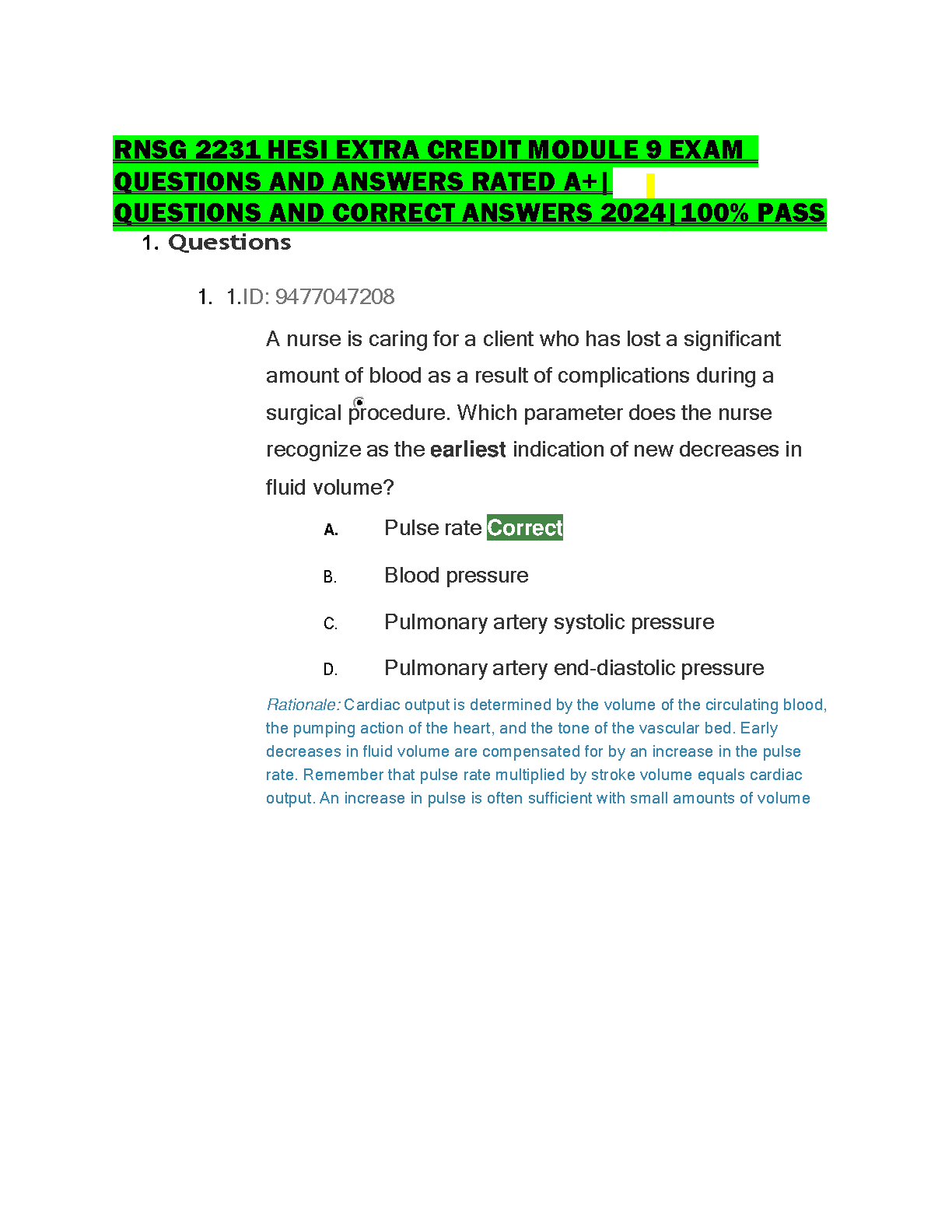 RNSG 2231 HESI Extra Credit Module 9 Exam Questions and Answers Rated A+ - 2024 Edition by [Author Name if available]