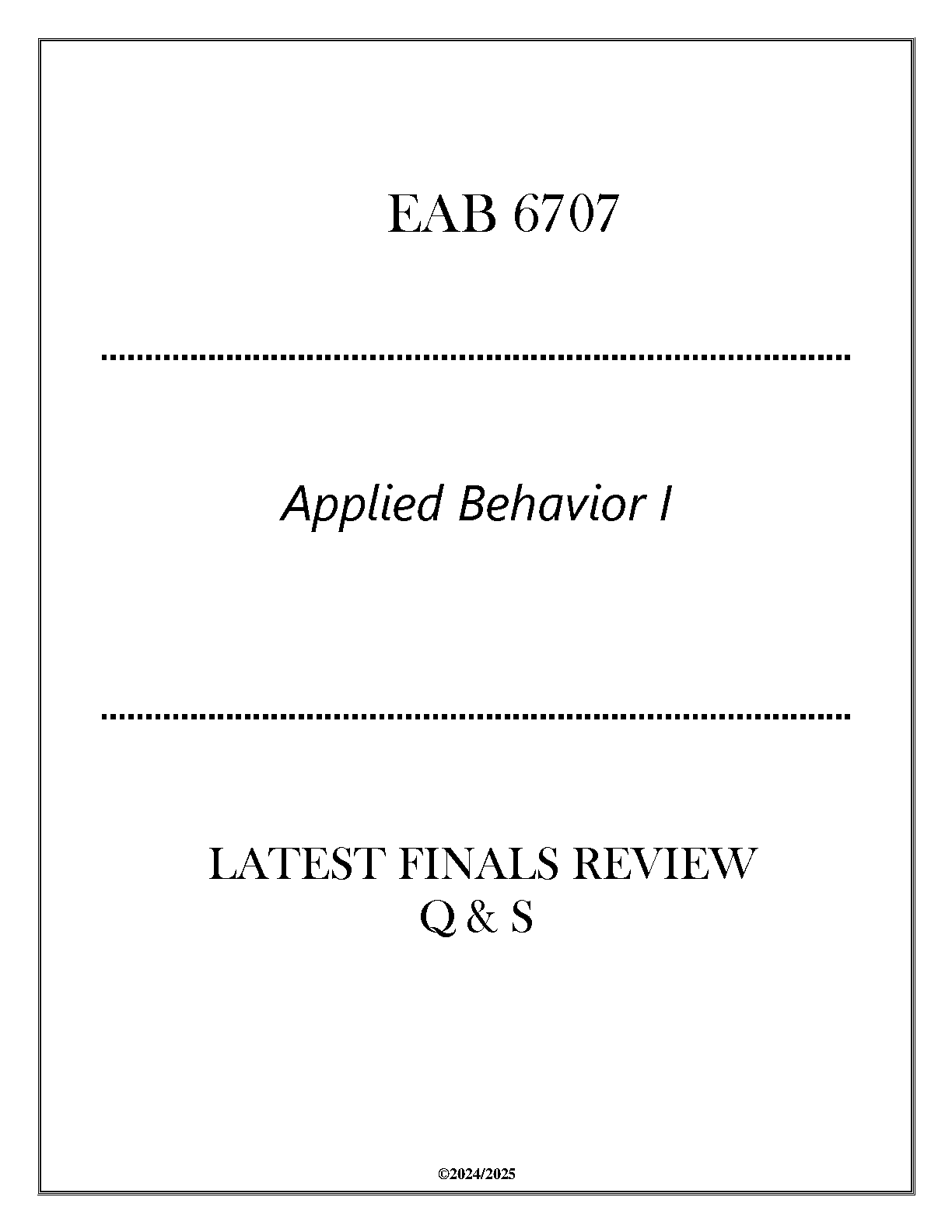 EAB 6707 Applied Behavior I: 2024-2025 Finals Review Questions and Answers