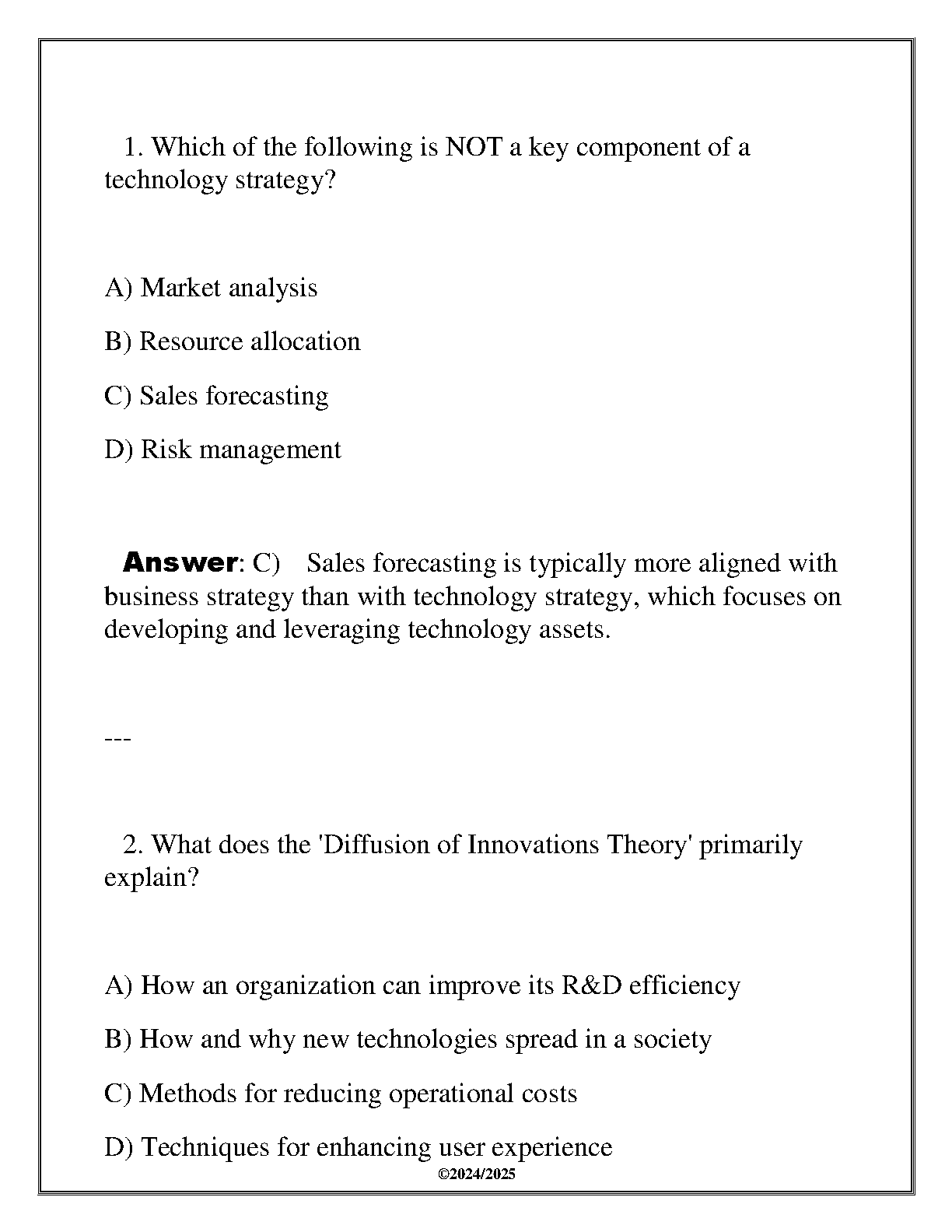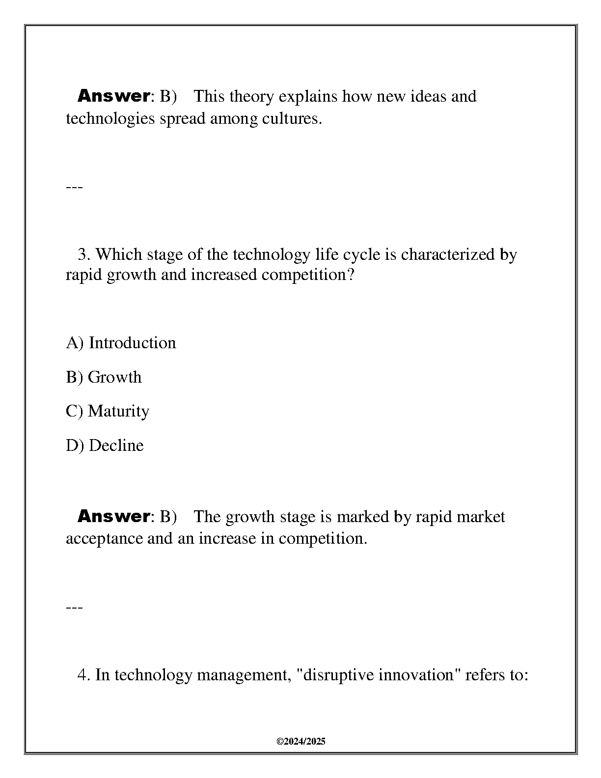 BU 621 Technology Management: Latest 2024-2025 Finals Review Q&A for Exam Success