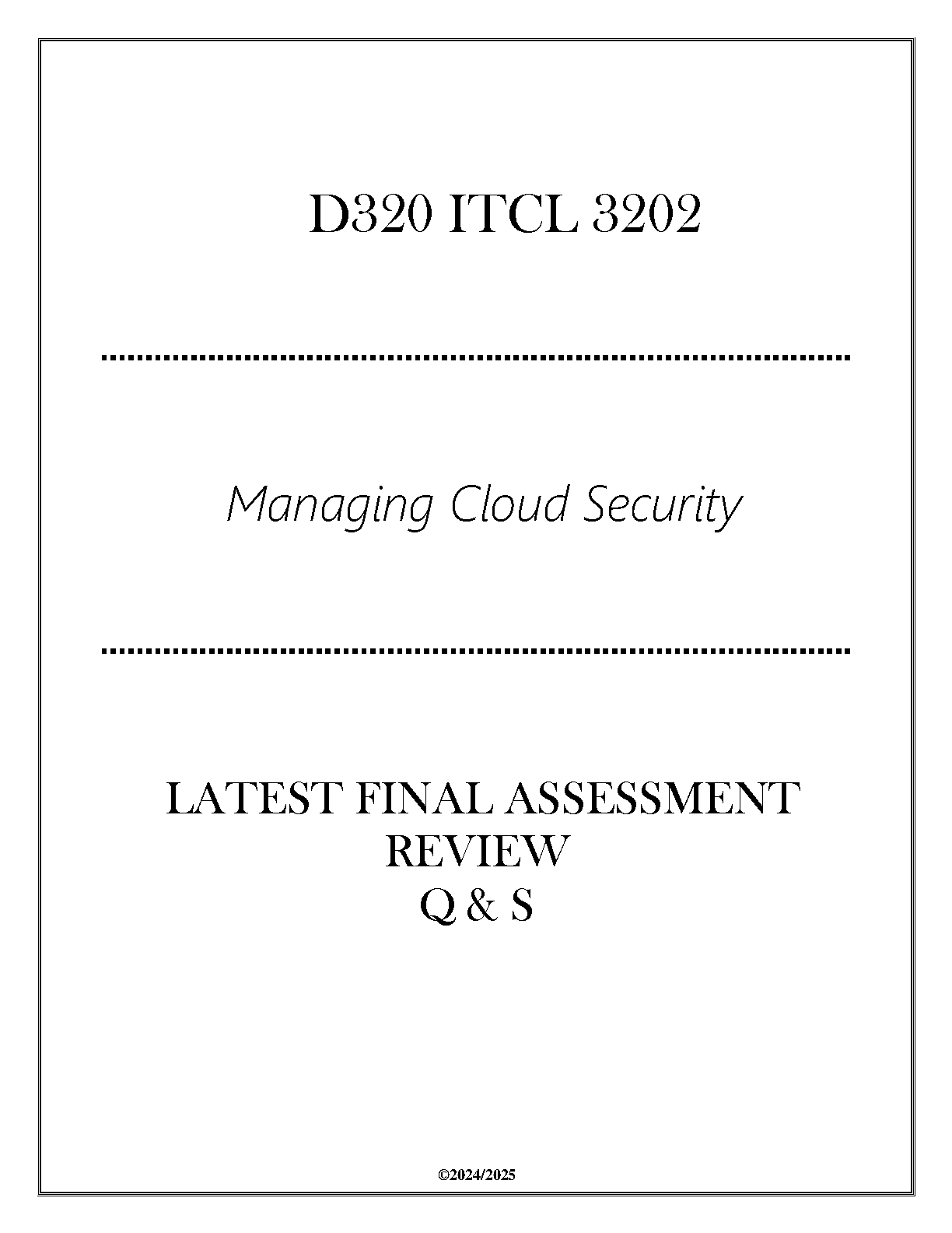 Ace your D320 ITCL 3202 Managing Cloud Security final exam with this comprehensive 2024/2025 review guide. This resource is designed to help students achieve high scores and avoid resits. Get access to practice questions and answers.