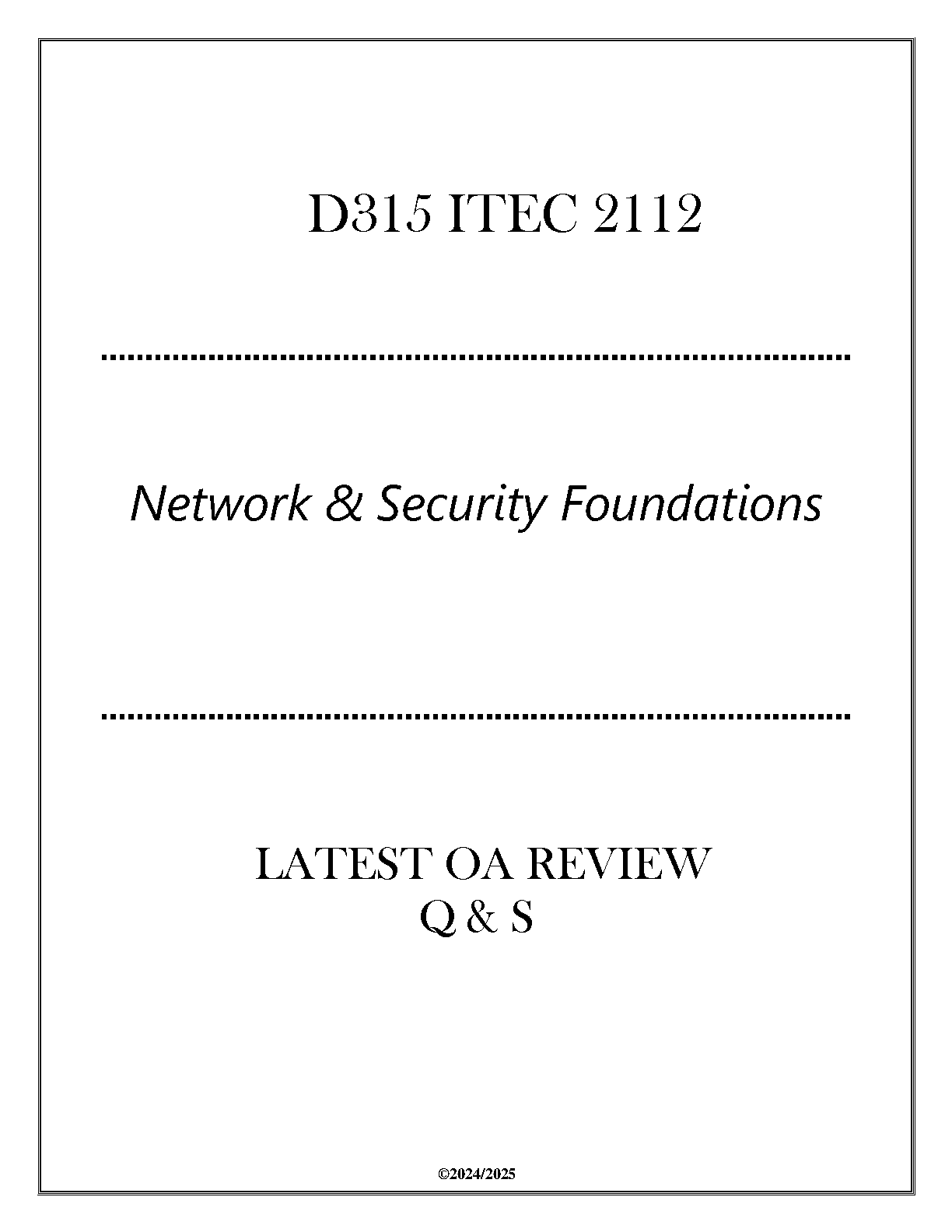 Ace your D315 ITEC 2112 Network & Security Foundations exam with this comprehensive 2024-2025 OA review guide. This resource contains questions and answers designed to help students achieve exam success on their first attempt, avoiding resits. Prepare effectively and confidently.