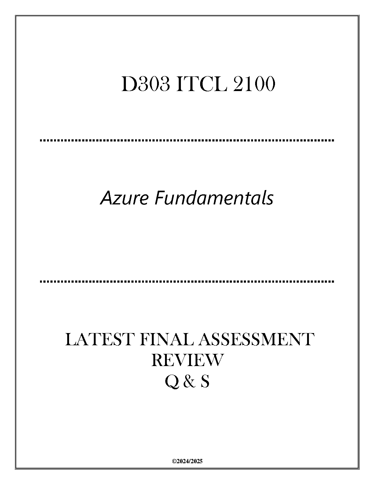 Ace your D303 ITCL 2100 Azure Fundamentals final exam with this comprehensive 2024-2025 review guide. This resource contains questions and answers designed to help students achieve exam success on their first attempt.