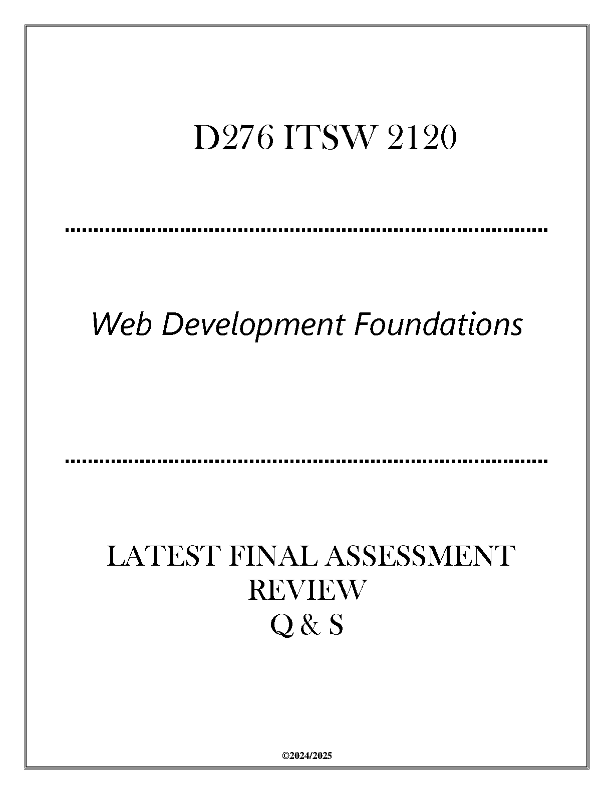 D276 ITSW 2120 Web Development Foundations: Latest 2024-2025 Final Assessment Review Q&A