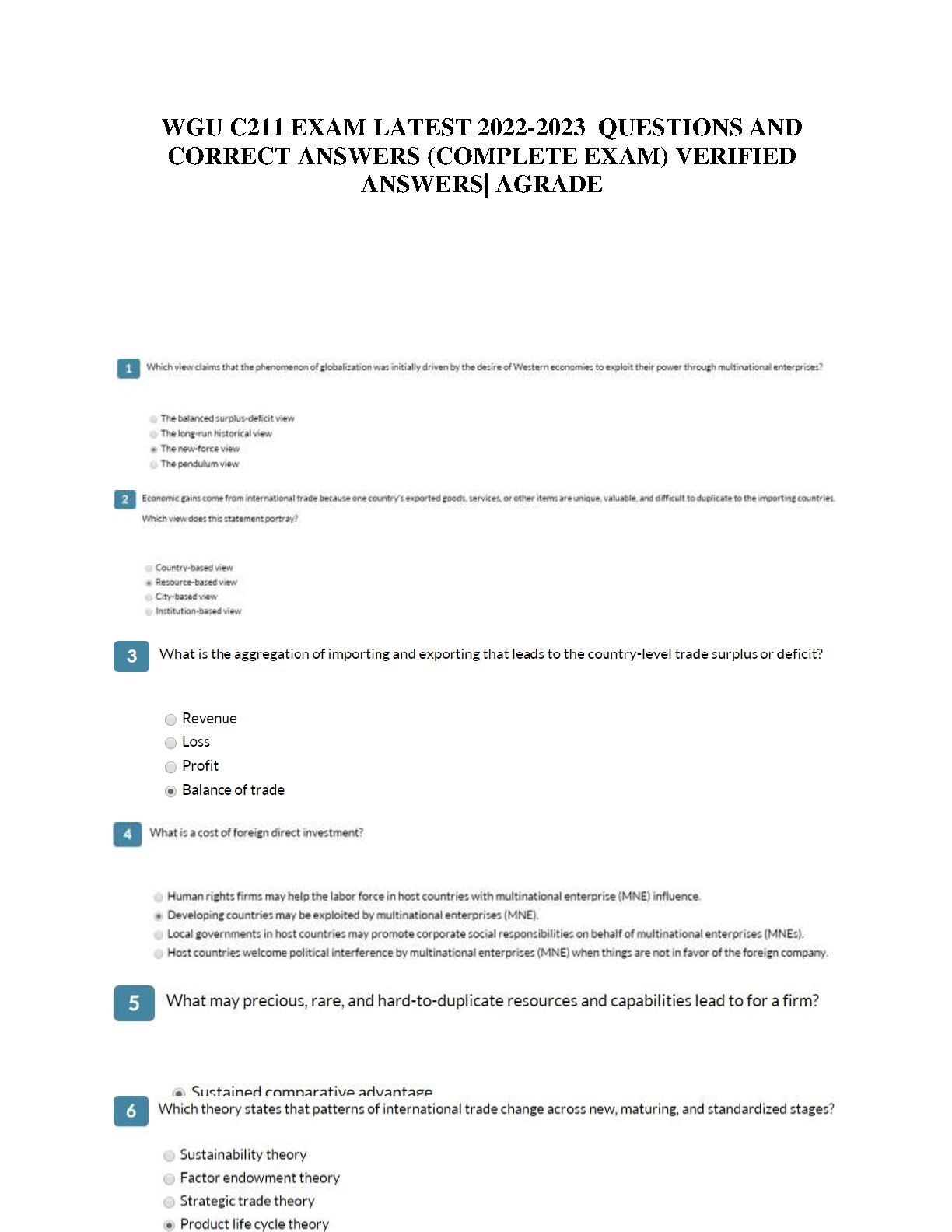 WGU C211 Exam: Latest 2022-2023 Questions and Verified Answers (Complete Exam) Agrade