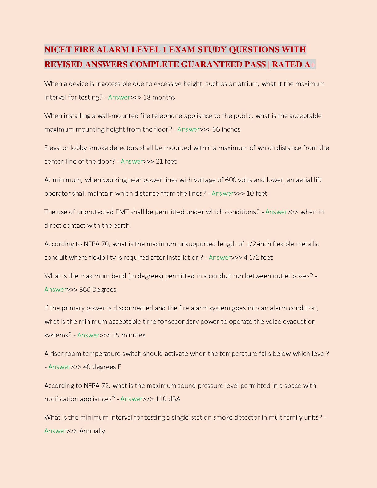 NICET Fire Alarm Level 1 Exam Study Questions with Revised Answers by Unknown Author (2024/2025 Edition)