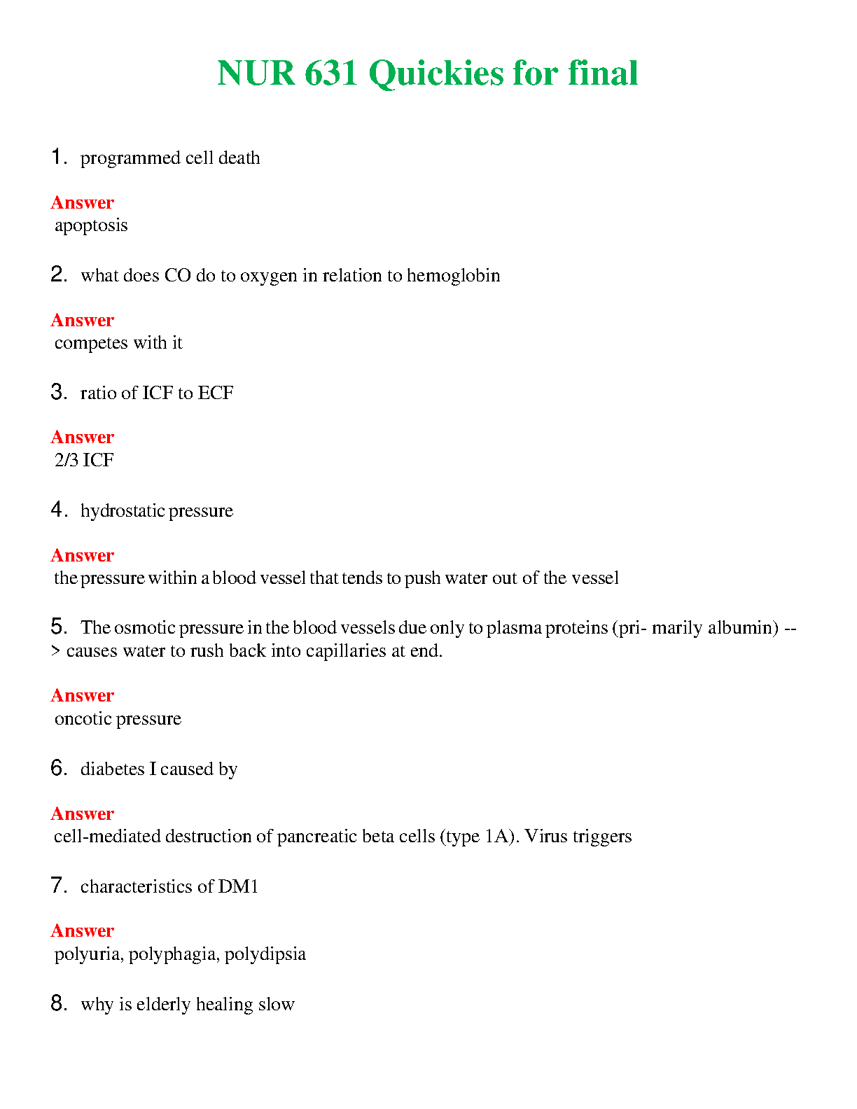 NUR 631 Quickies for Final Exam: A 2024-2025 Guide for First-Attempt Success