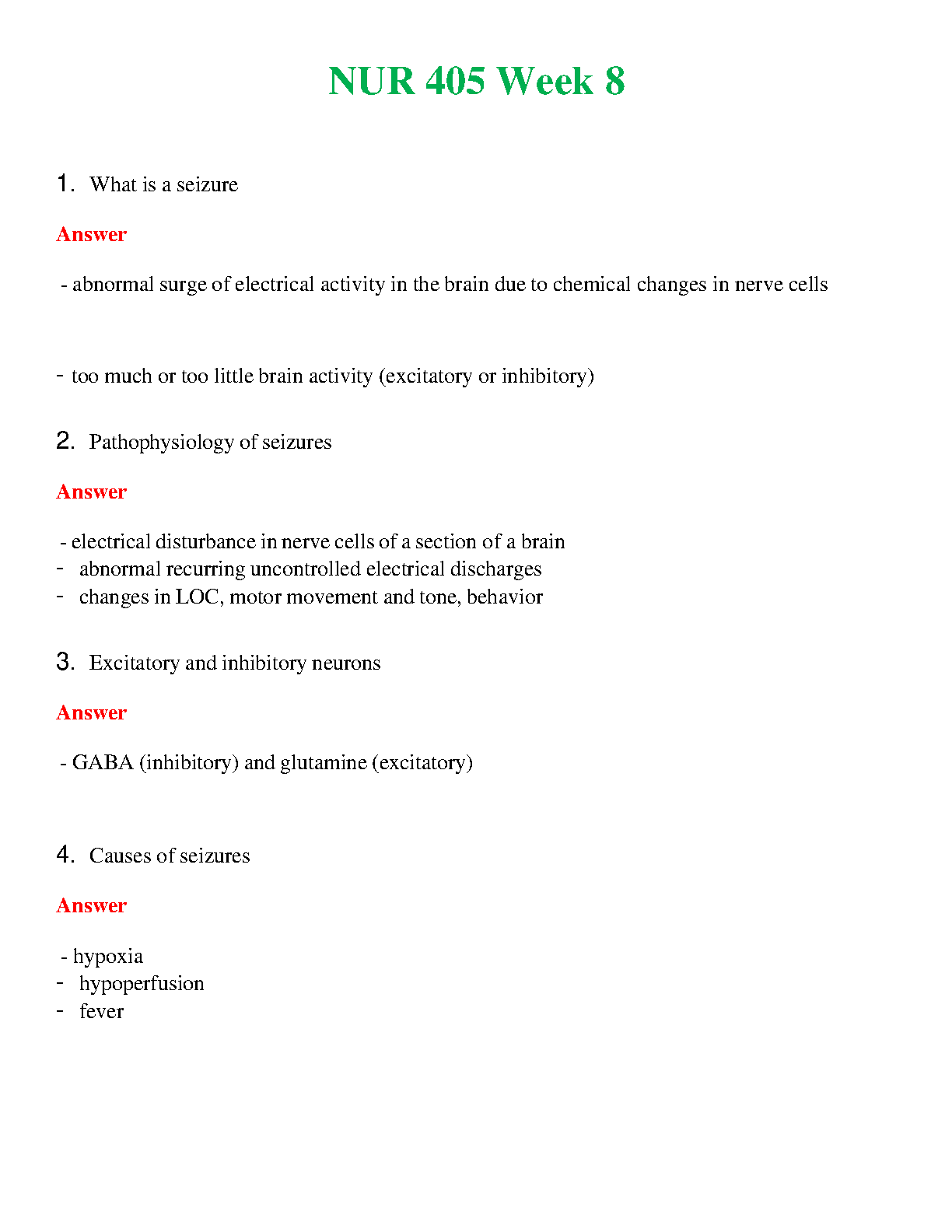 NUR 405 Week 8 Study Guide: Mastering Seizures for Exam Success in 2024-2025