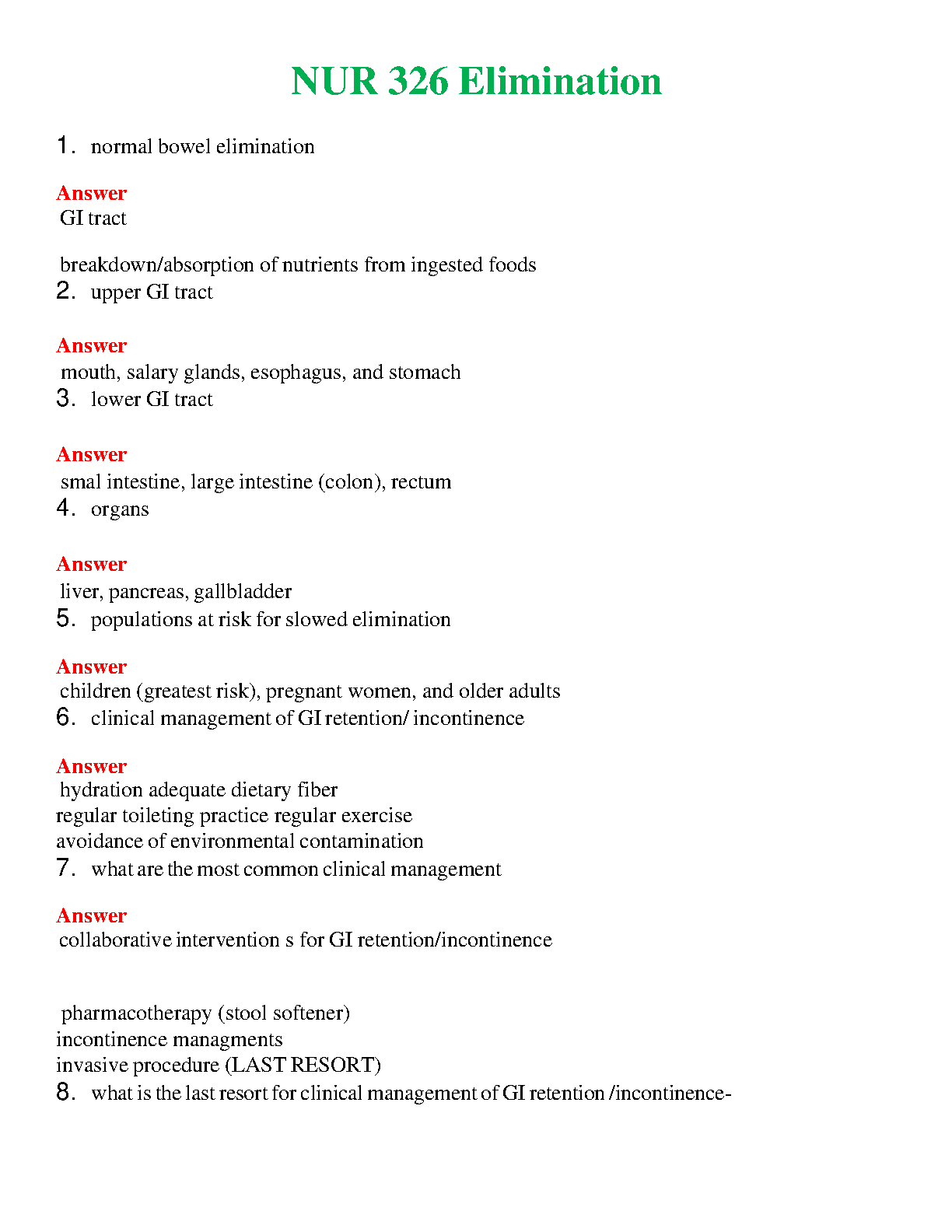 NUR 326 Elimination: A Comprehensive Guide for Nursing Students (2024-2025 Edition)
