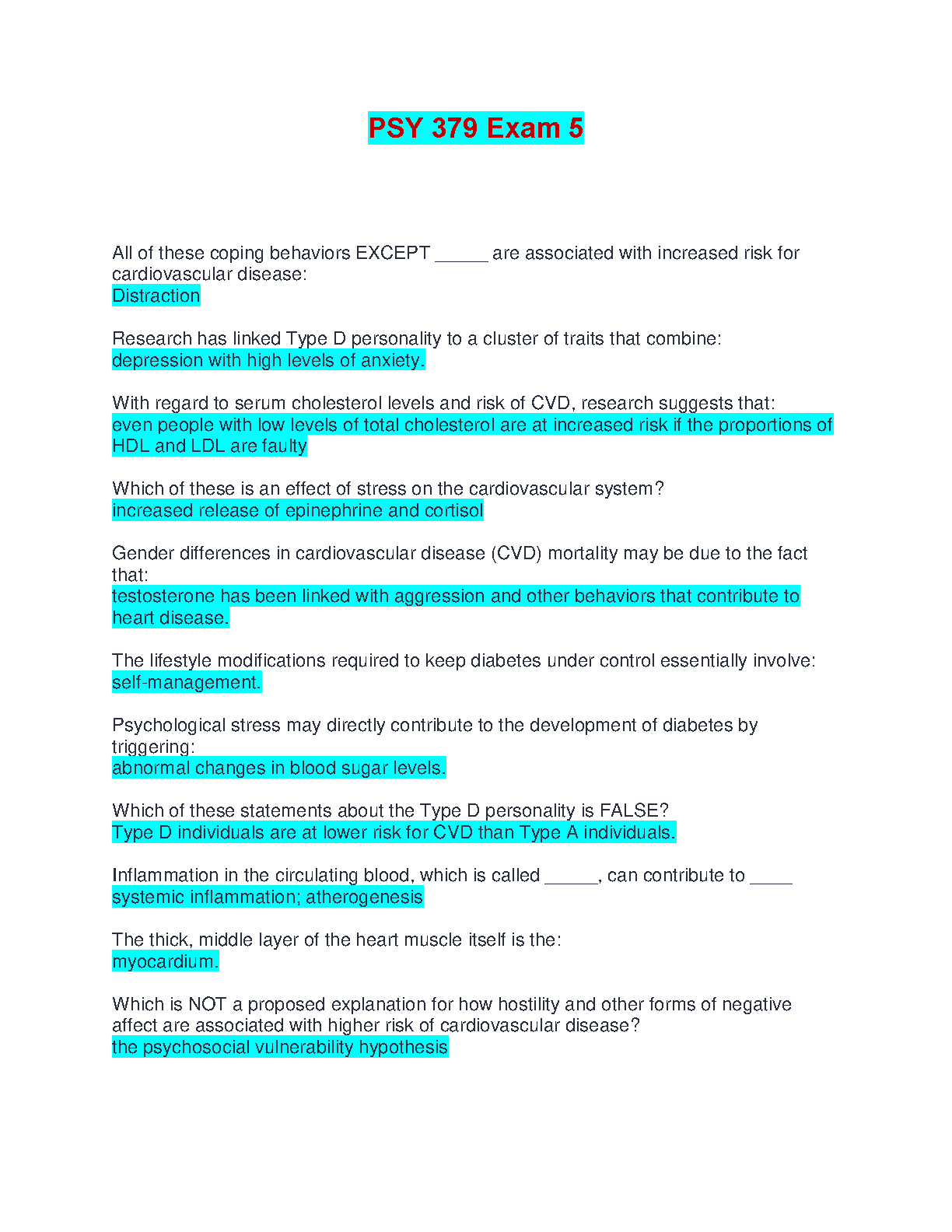 This meticulously crafted study guide for PSY 379 Exam 5 is designed to help students master the course material and achieve exam success on their first attempt. It covers key concepts, practice questions, and strategies to avoid resits, making it an invaluable resource for the 2024-2025 academic year.