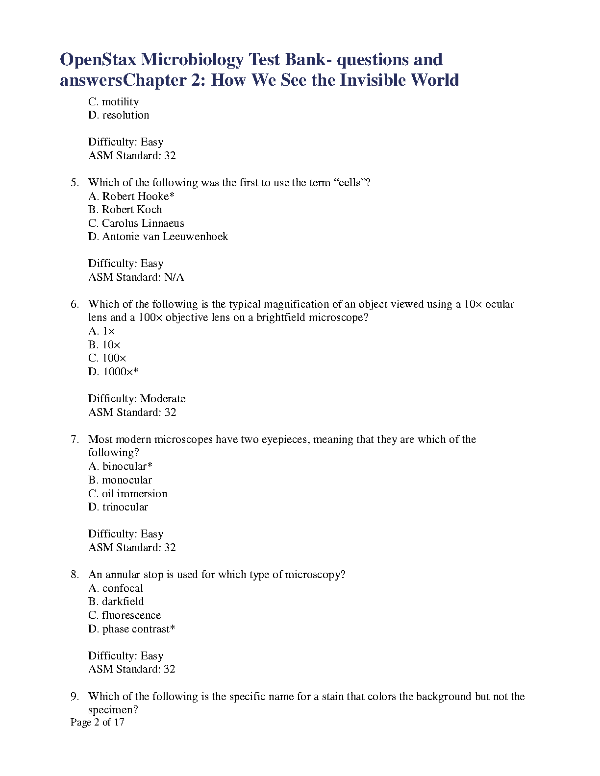 OpenStax Microbiology Test Bank: Questions and Answers for Chapter 2 - How We See the Invisible World (2024-2025 Edition)