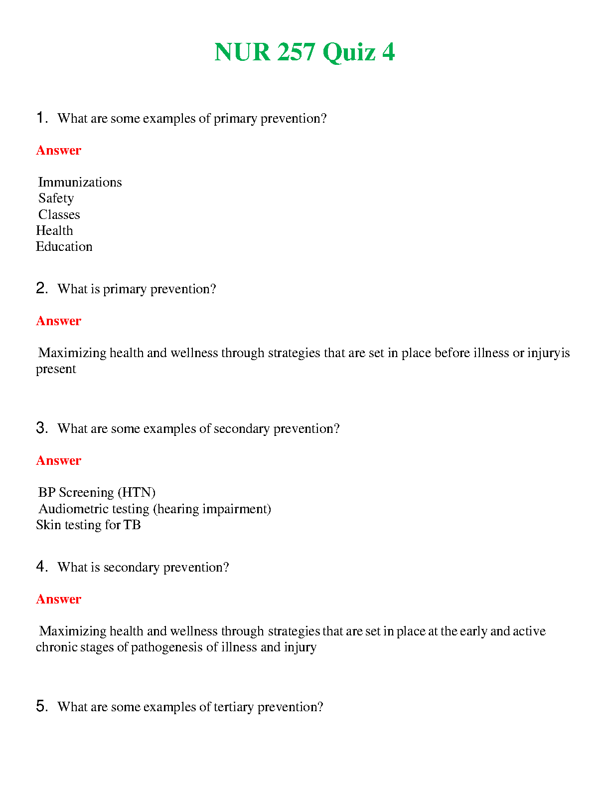 NUR 257 Quiz 4: A Comprehensive Guide to Primary, Secondary, and Tertiary Prevention for Nursing Students