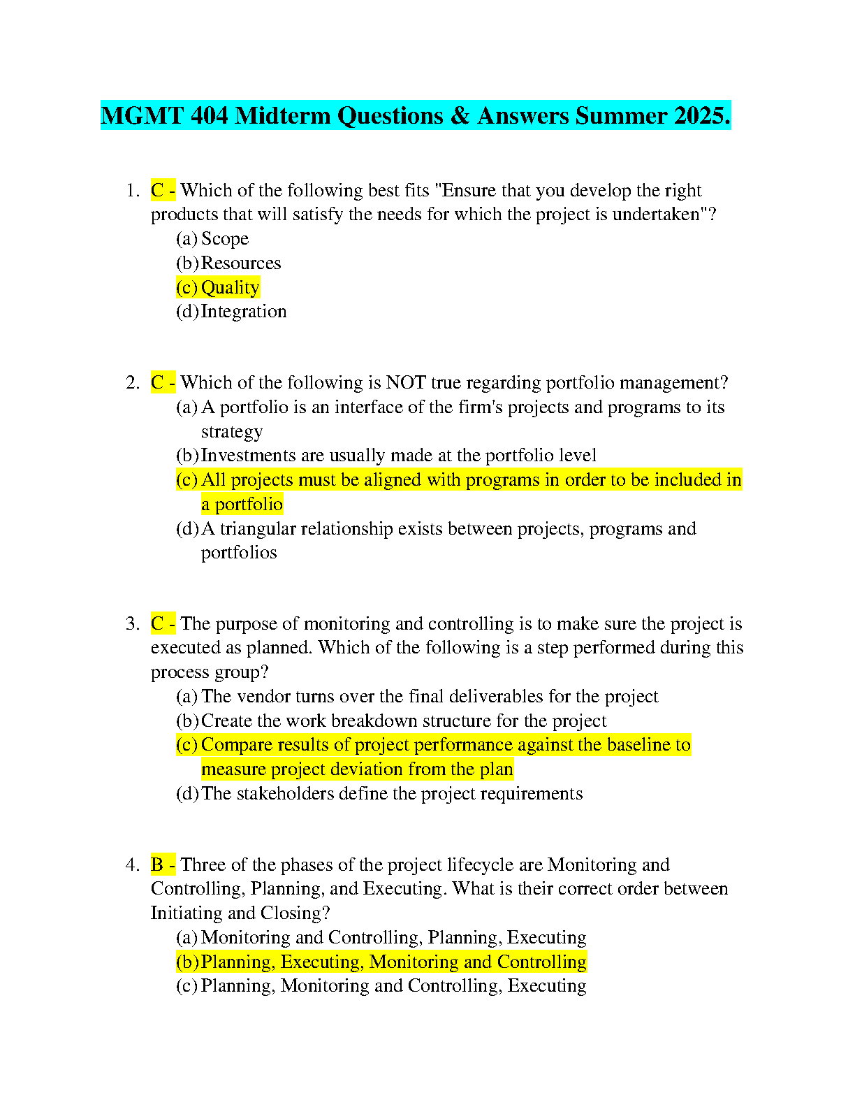 This comprehensive resource provides a detailed set of questions and answers for the MGMT 404 midterm exam, helping students achieve exam success on their first attempt. The questions cover key concepts and are designed to mimic the actual exam format, ensuring thorough preparation and minimizing the risk of resits.