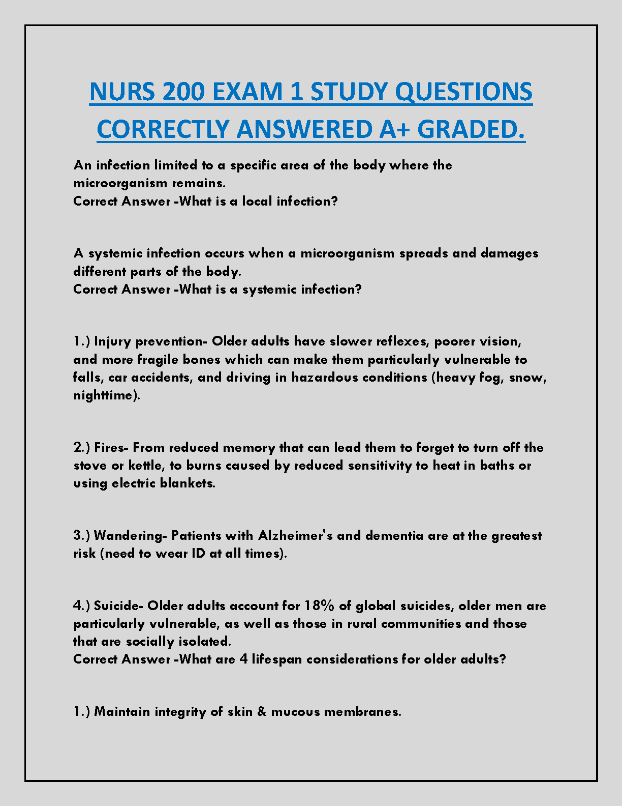 NURS 200 Exam 1 Study Questions: A+ Graded Edition - Complete Guide to Ace Your Exams