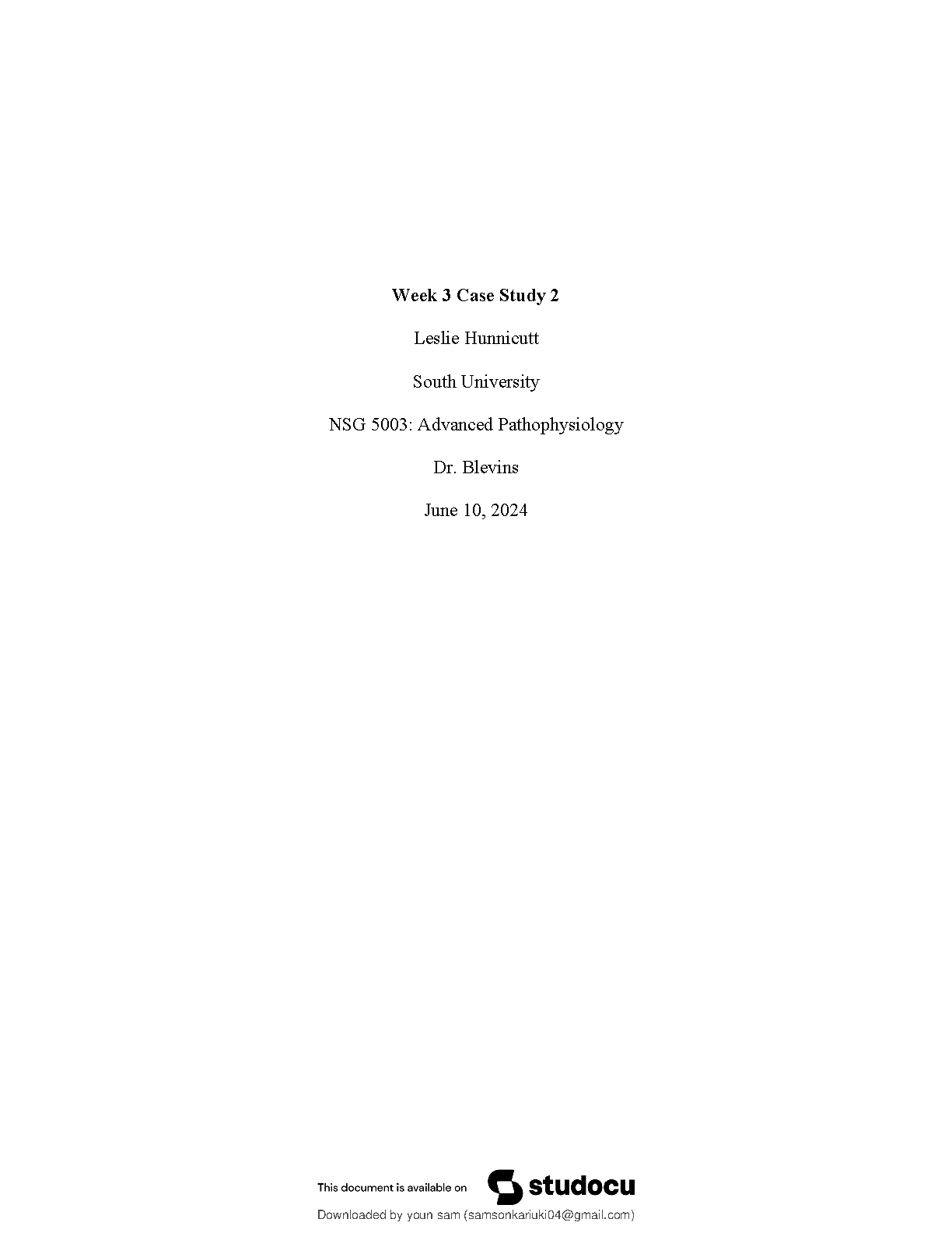 NSG 5003 Advanced Pathophysiology Week 3 Case Study 2 by Leslie Hunnicutt