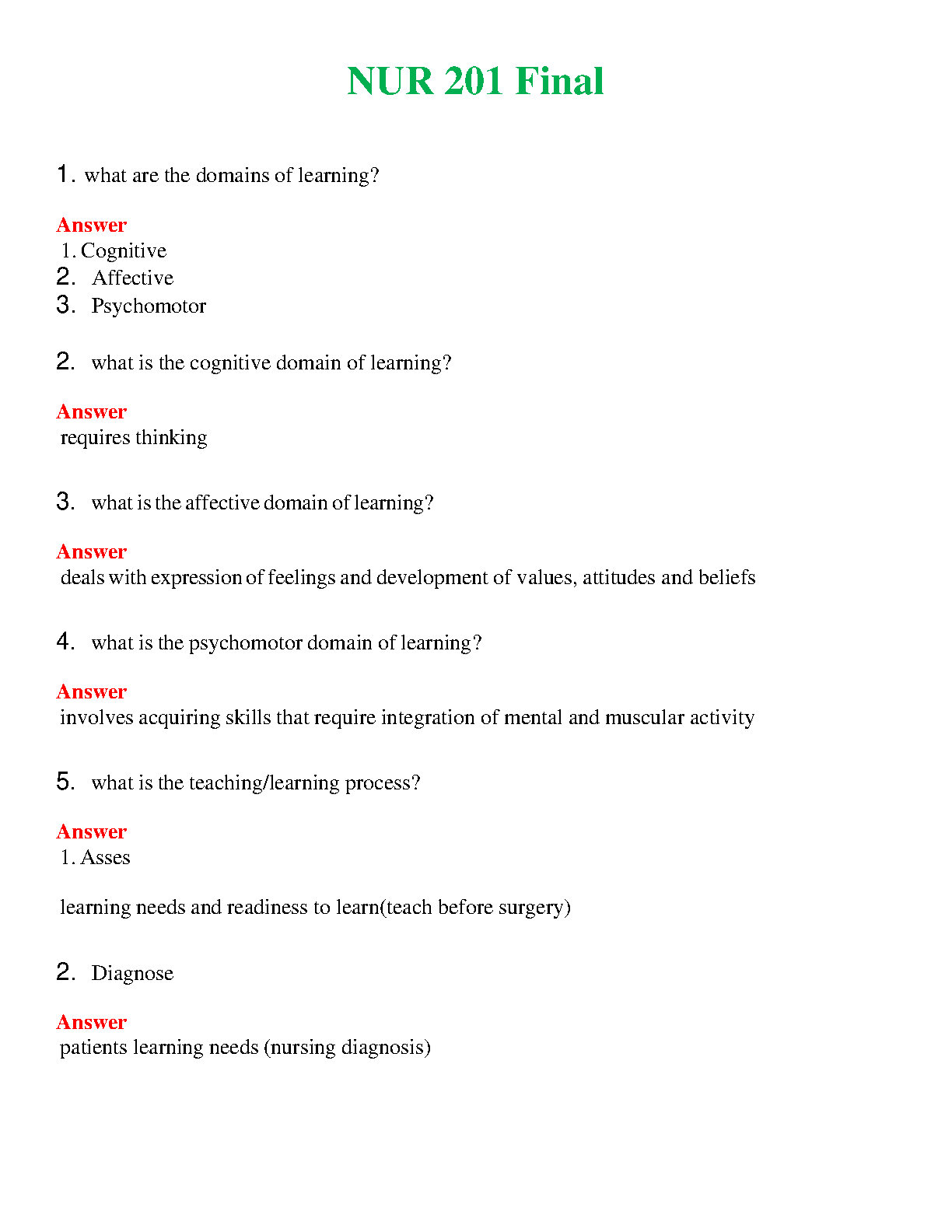 NUR 201 Final Exam Study Guide: Domains of Learning and the Teaching/Learning Process