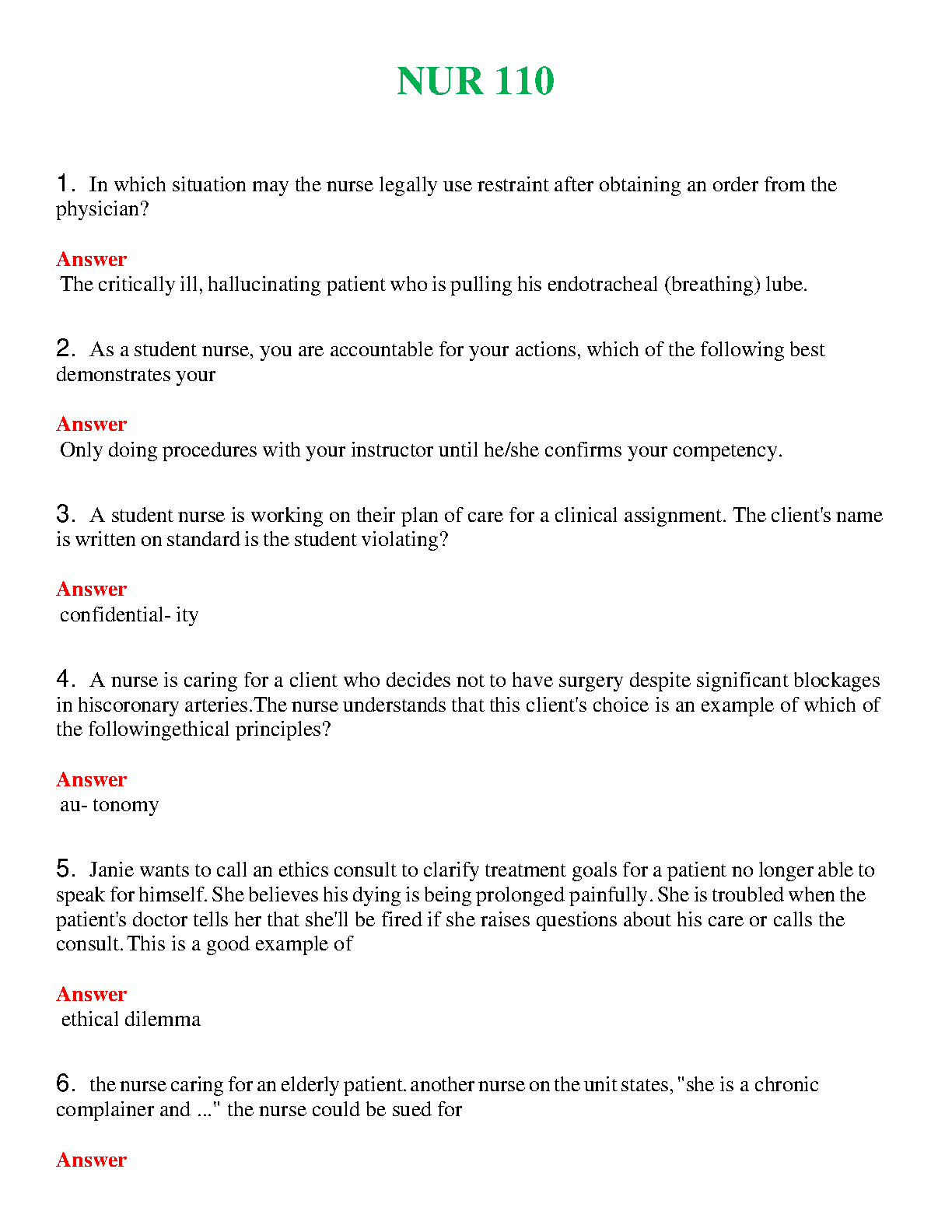 NUR 110 Exam Prep: Ace Your Nursing Exams with This 2024-2025 Guide