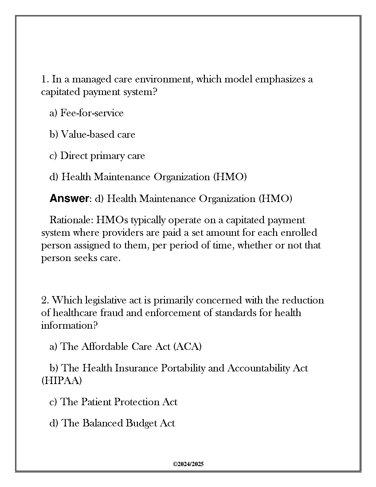 HFMA CSPR Latest Final Test Review Questions and Answers 2024-2025 Edition: Ace Your Exams on the First Attempt