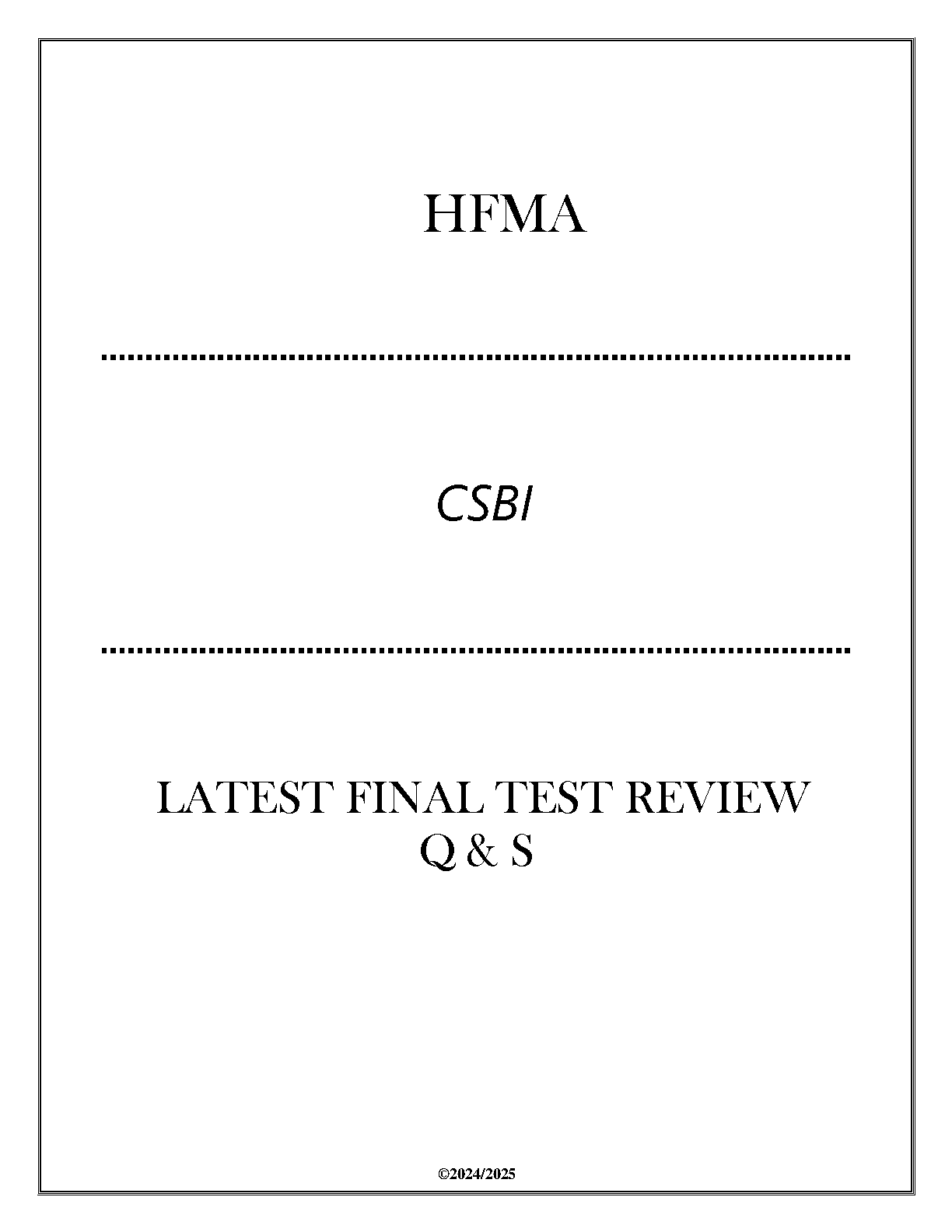 HFMA CSBI Final Exam Review Questions and Answers 2024-2025 Edition: Ace Your Exams on the First Attempt