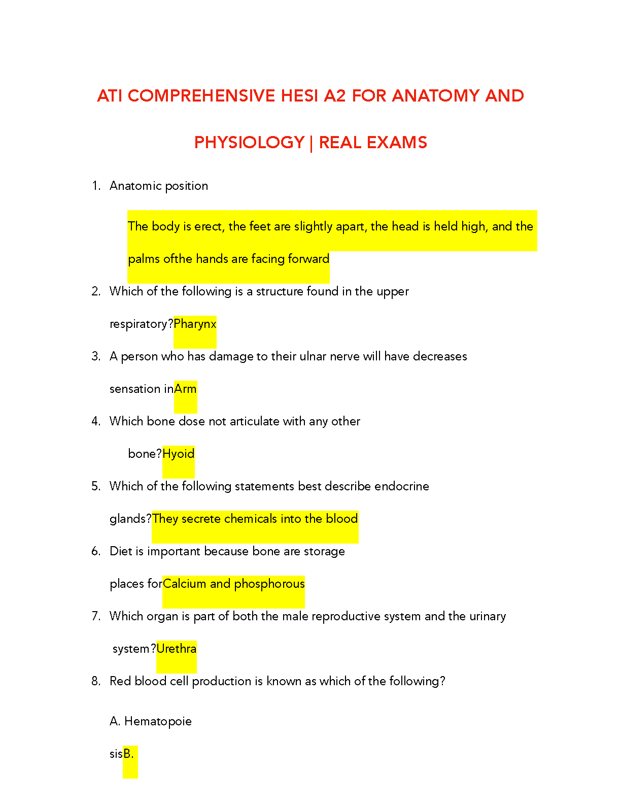 ATI Comprehensive HESI A2 for Anatomy and Physiology Real Exams - 2024/2025 Edition by Unknown Authors
