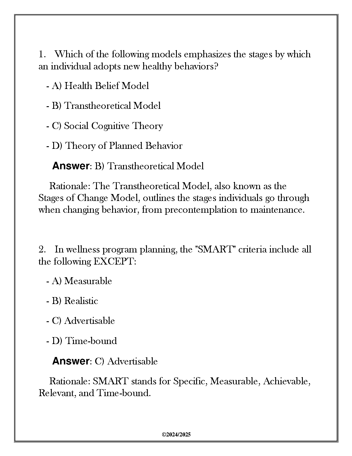 HLTH 419 Wellness & Behavior Change Theories: Latest 2024-2025 Final Exam Review Q&A