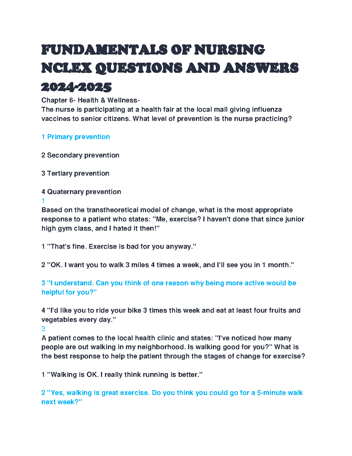 Ace your NCLEX exams on the first attempt with this comprehensive guide for the 2024-2025 academic year. This resource includes numerous practice questions and answers to help you master the fundamentals of nursing and boost your exam confidence.