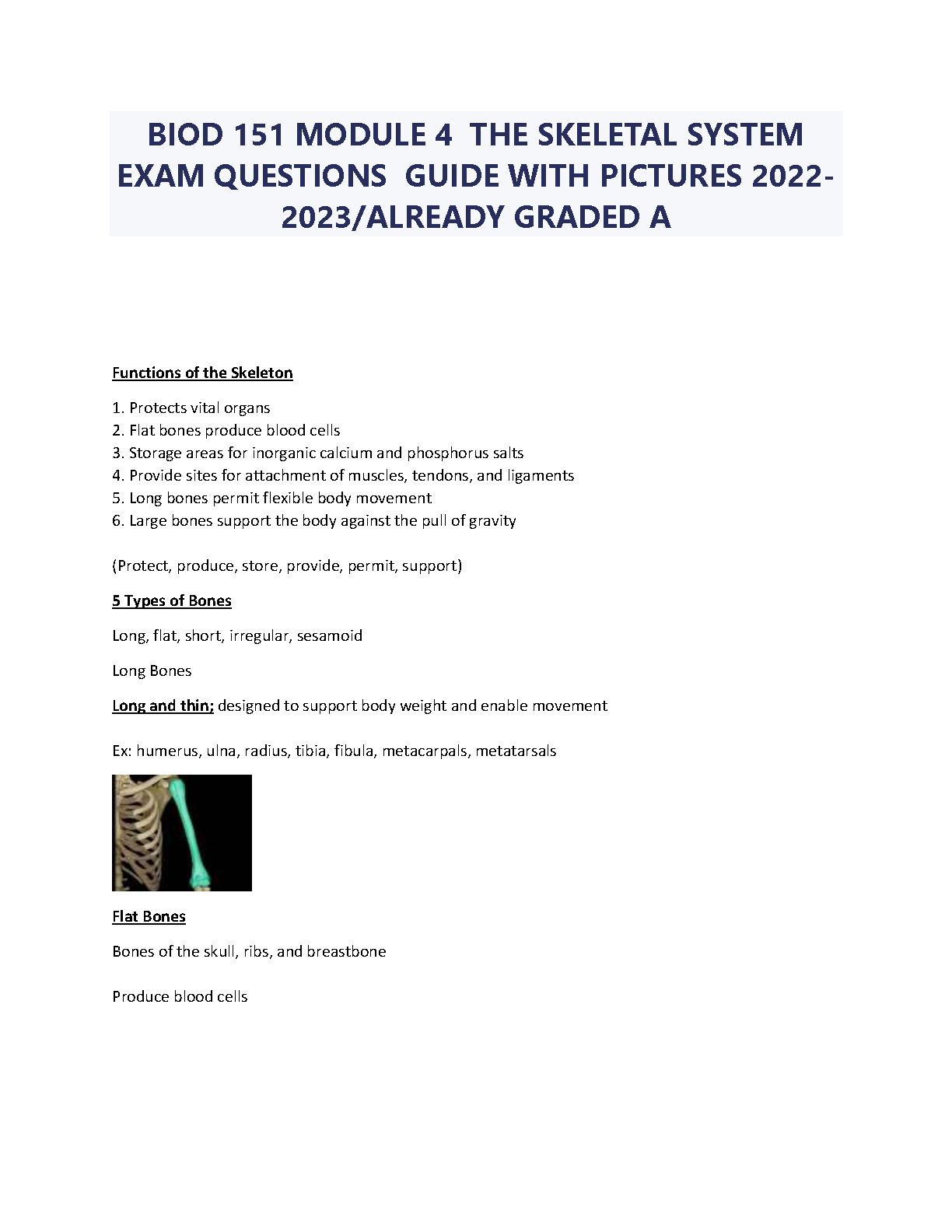 Ace your BIOD 151 exam on the first try with this comprehensive guide. This resource includes detailed exam questions, illustrative pictures and is already graded, covering all key skeletal system concepts from Module 4. Perfect for students aiming for exam success and avoiding resits in the 2024/2025 academic year.