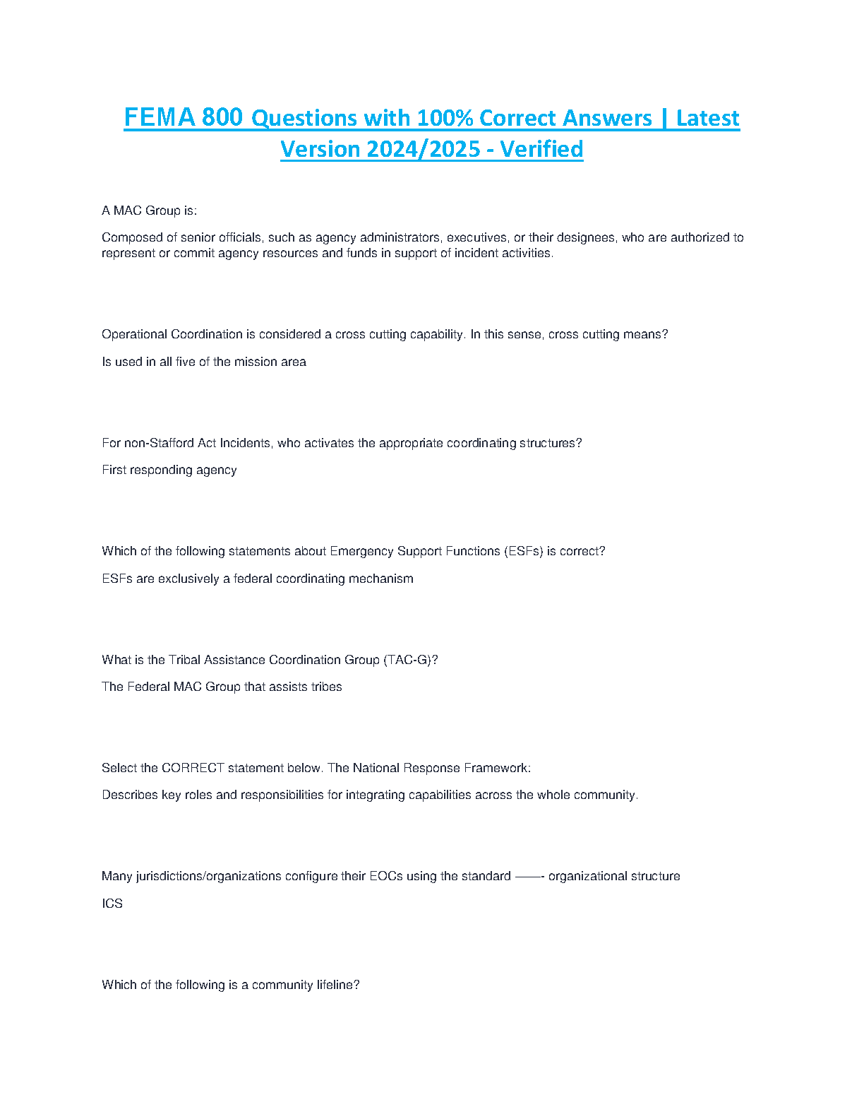 Ace your FEMA 800 exam with this comprehensive question bank, featuring 100% accurate answers and covering the latest 2024/2025 material. Pass on your first try and avoid resits.