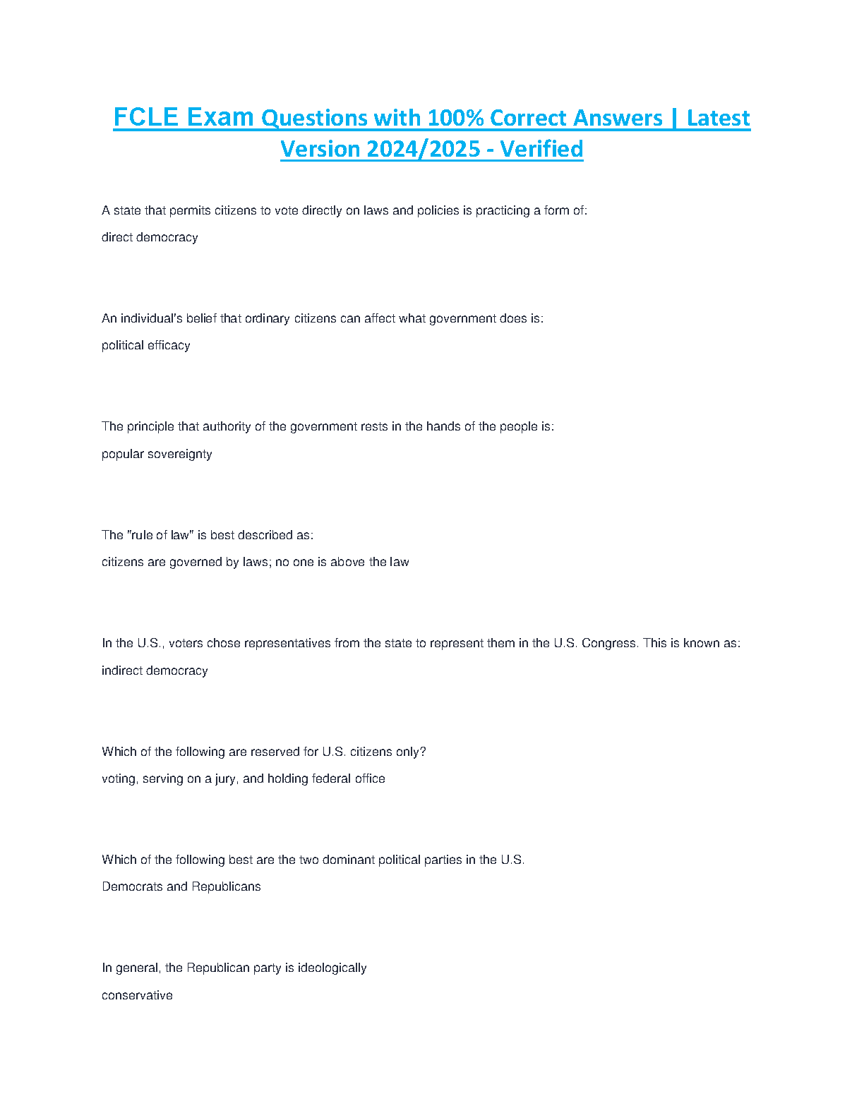 Ace your FCLE exam on the first attempt with this comprehensive study guide. This 2024/2025 edition contains verified questions and answers, ensuring you're well-prepared. Avoid resits and achieve academic success.