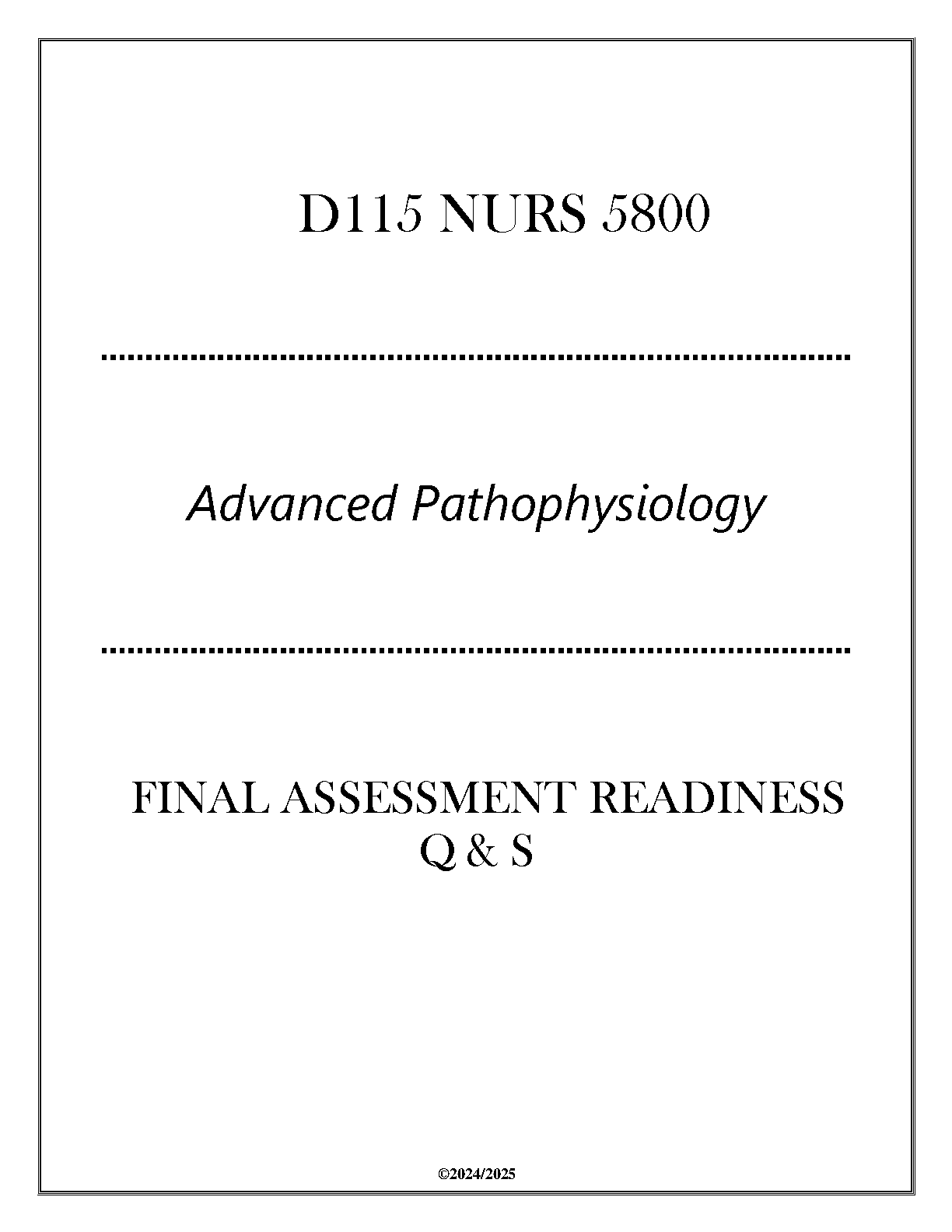 D115 NURS 5800 Advanced Pathophysiology Final Assessment Readiness Q&A 2024-2025 Edition