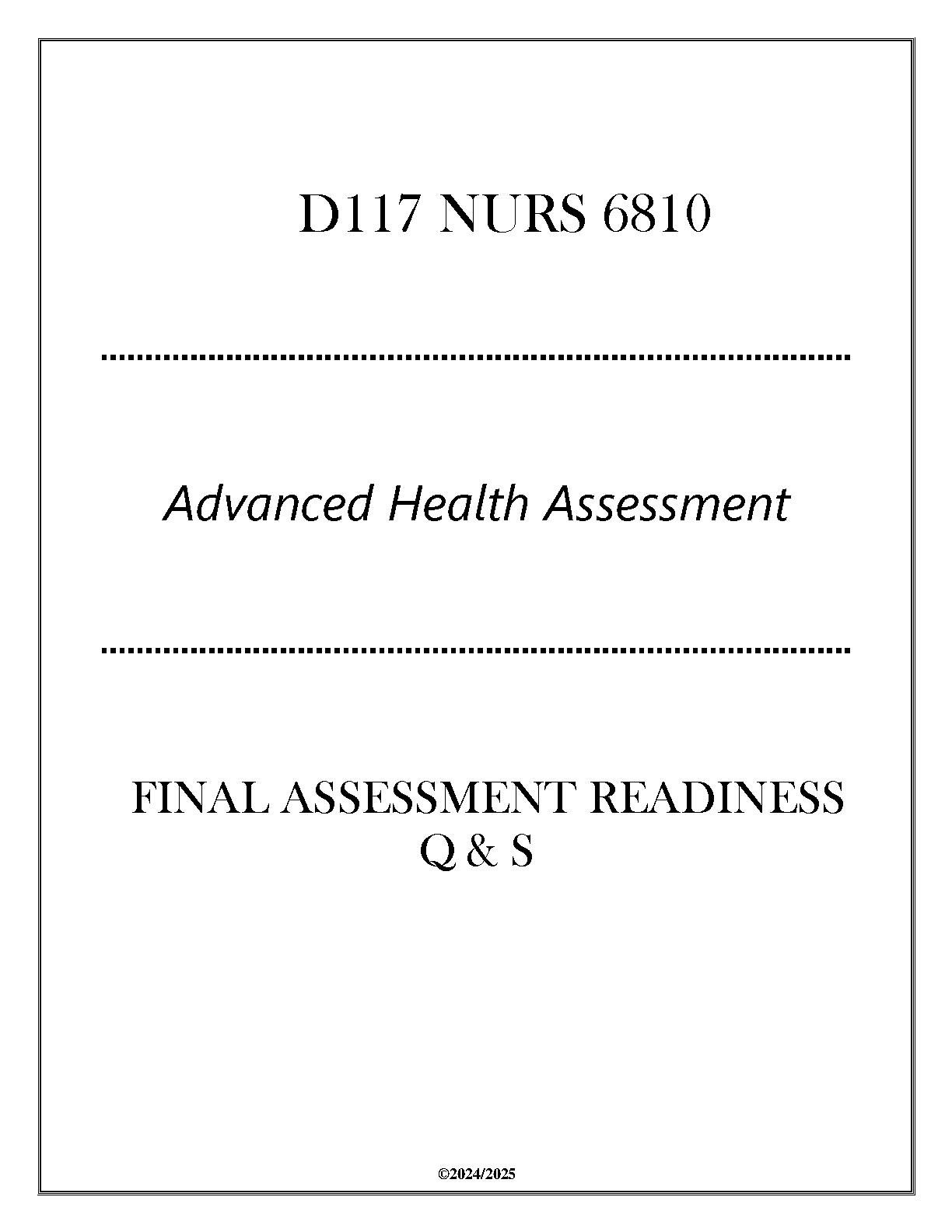 D117 NURS 6810 Advanced Health Assessment Final Assessment Readiness Q&A 2024-2025 Edition