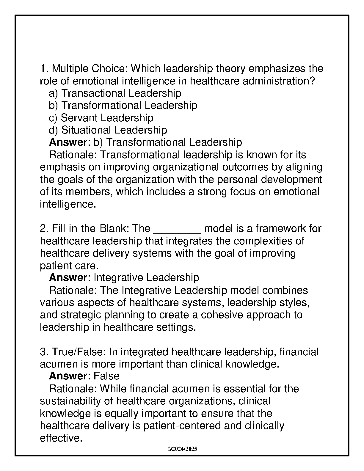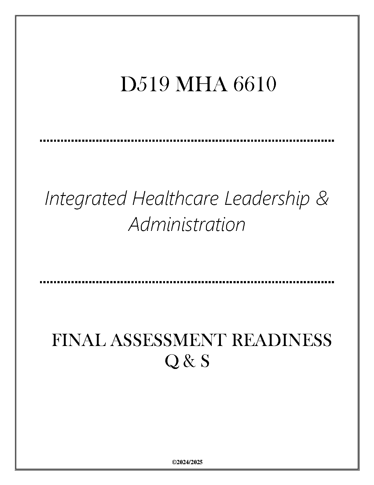 D519 MHA 6610: Integrated Healthcare Leadership & Administration Final Assessment Readiness Q&A - 2024/2025 Edition