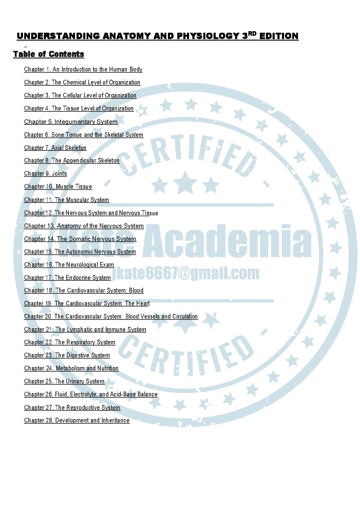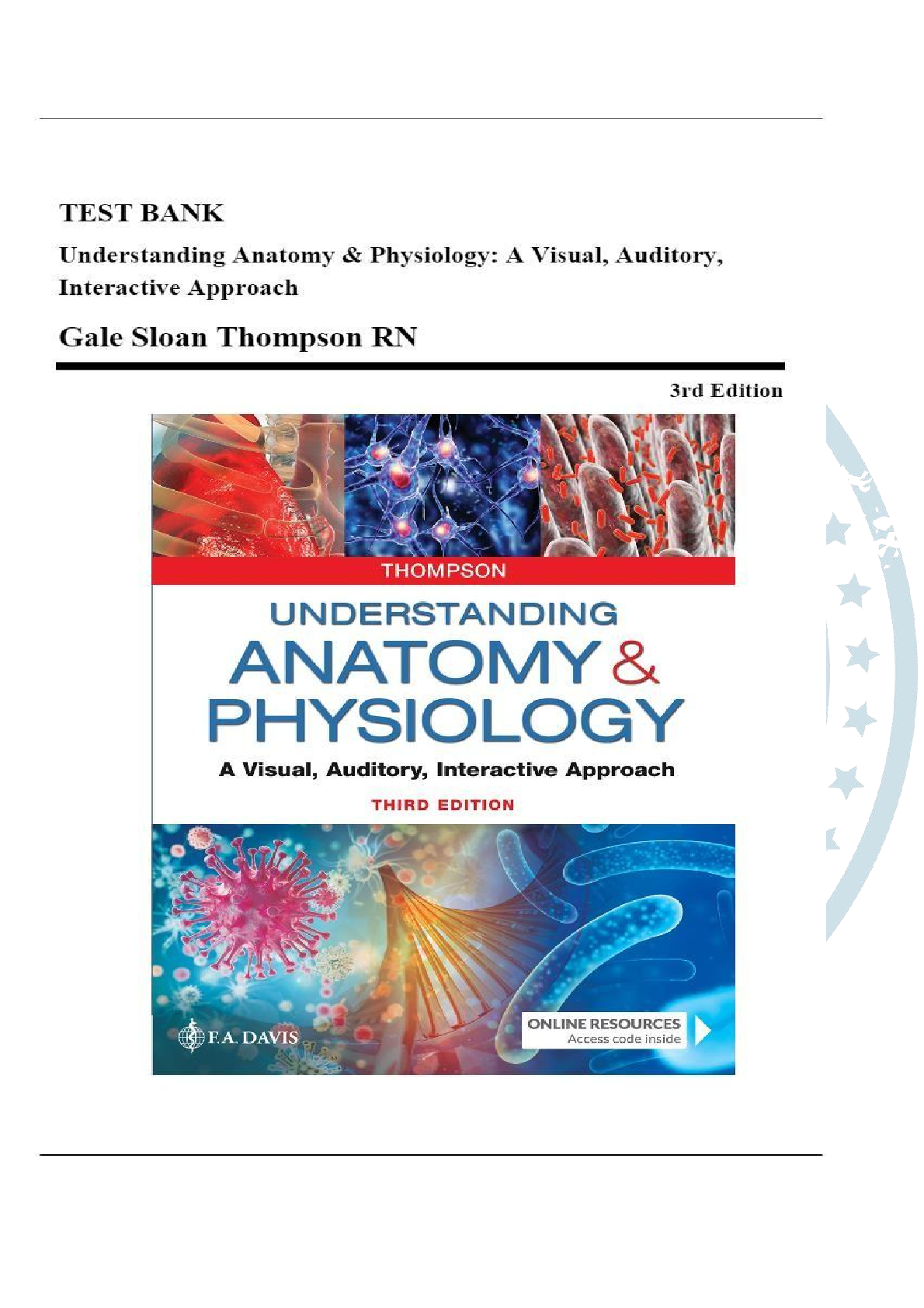 Understanding Anatomy & Physiology: A Visual, Auditory, Interactive Approach, 3rd Edition Test Bank by Gale Sloan Thompson RN