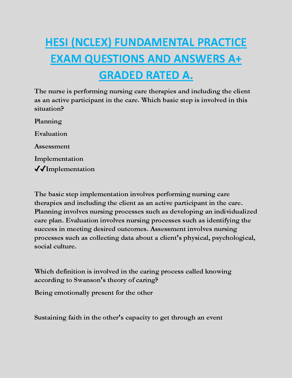 Ace your HESI and NCLEX exams on the first attempt with this comprehensive 2024/2025 edition of HESI (NCLEX) Fundamental Practice Exam Questions and Answers. This resource contains graded, rated A+ questions and answers to help you master fundamental nursing concepts and avoid resits. Practice makes perfect, and this guide provides you with the perfect practice.